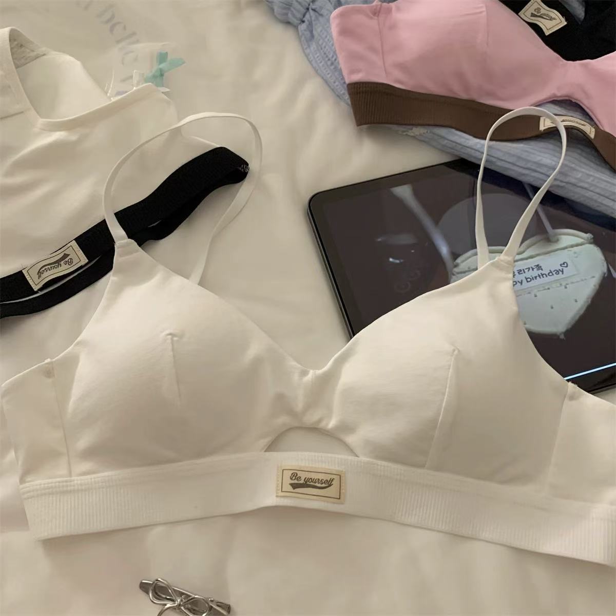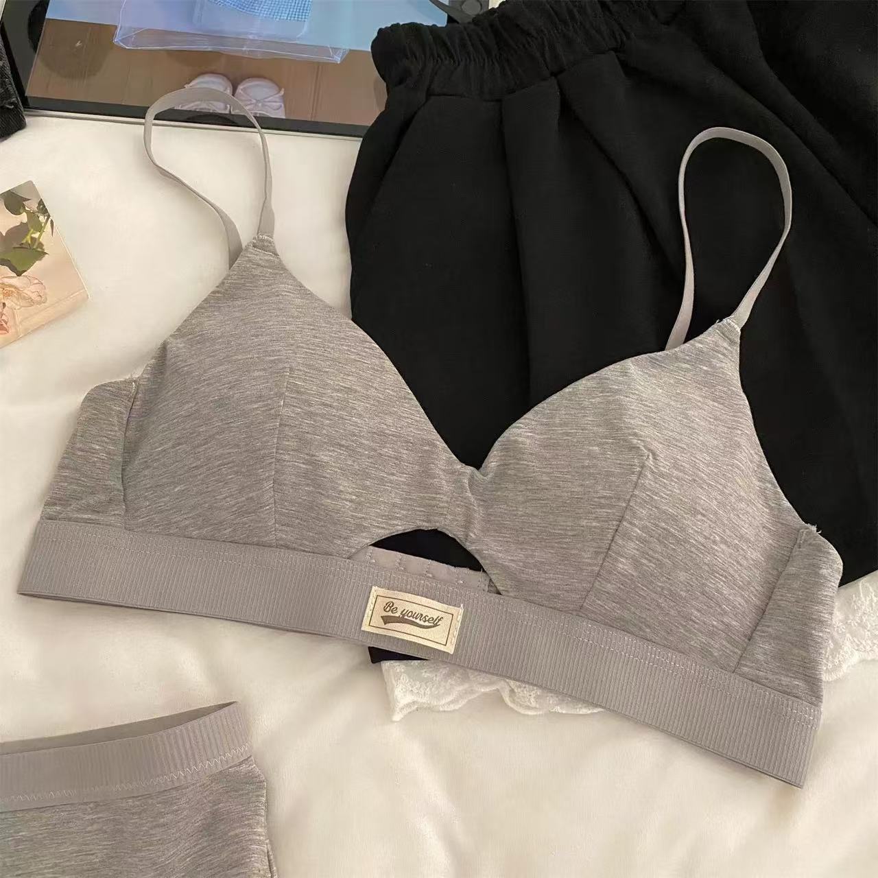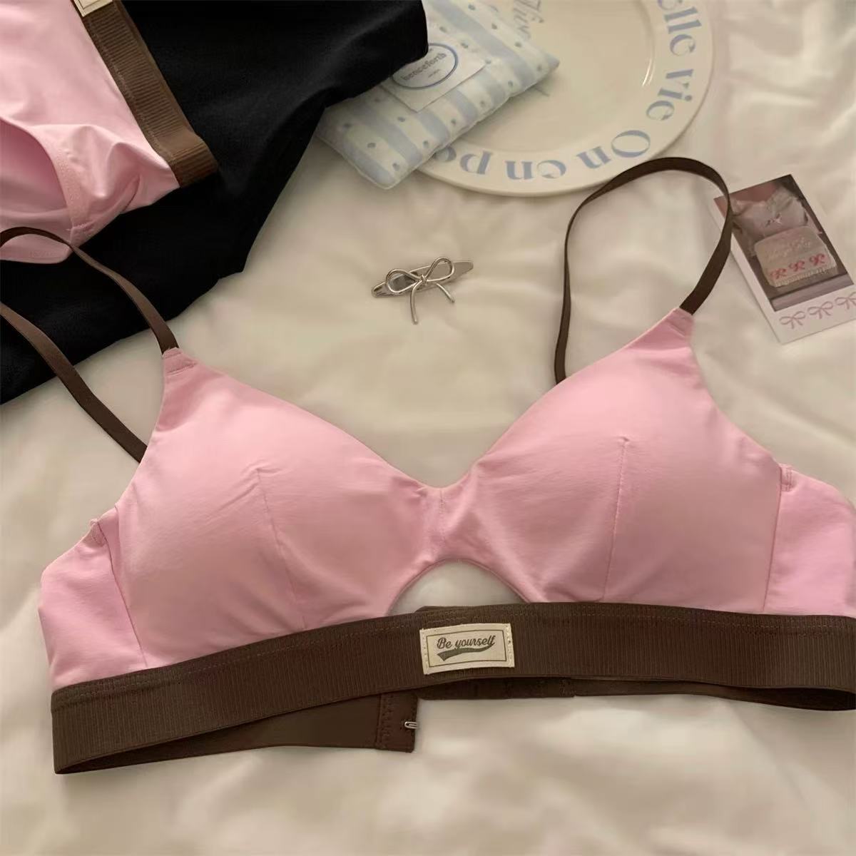 가을 여성용 미국 복고풍 도파민 스포츠 스타일 속옷, 섹시하고 얇은 작은 가슴 푸시업 삼각컵 브라스토어 가기
