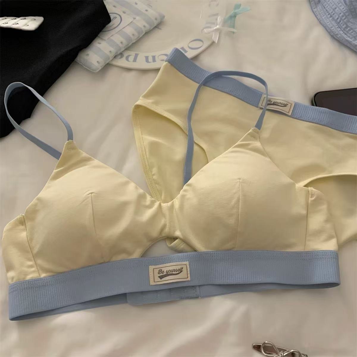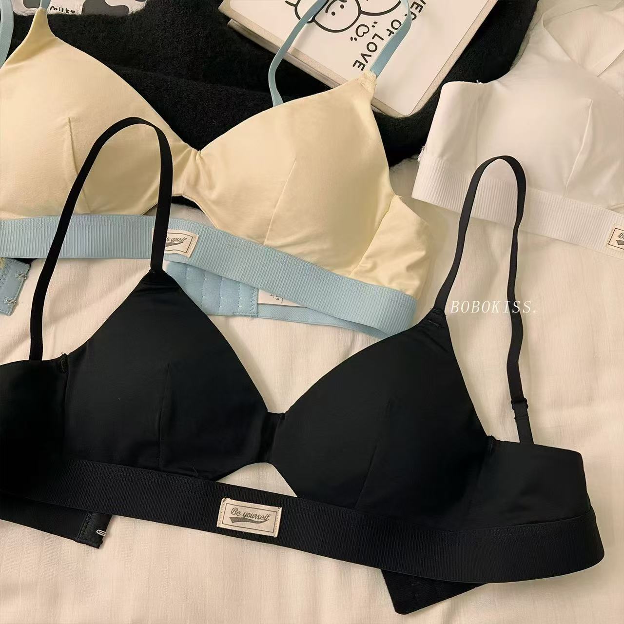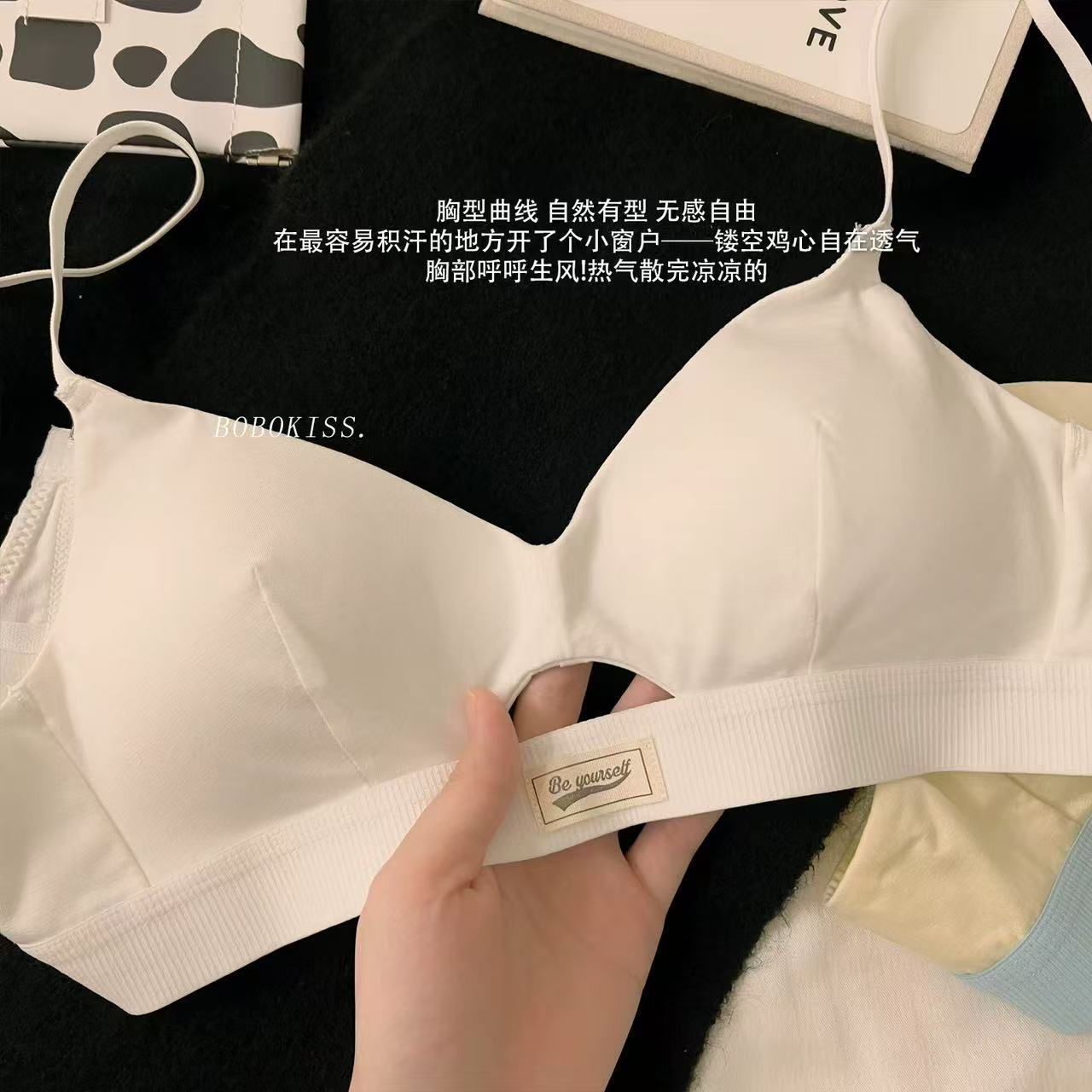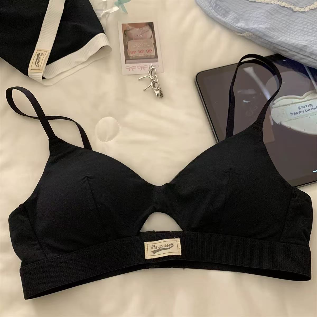 가을 여성용 미국 복고풍 도파민 스포츠 스타일 속옷, 섹시하고 얇은 작은 가슴 푸시업 삼각컵 브라스토어 가기