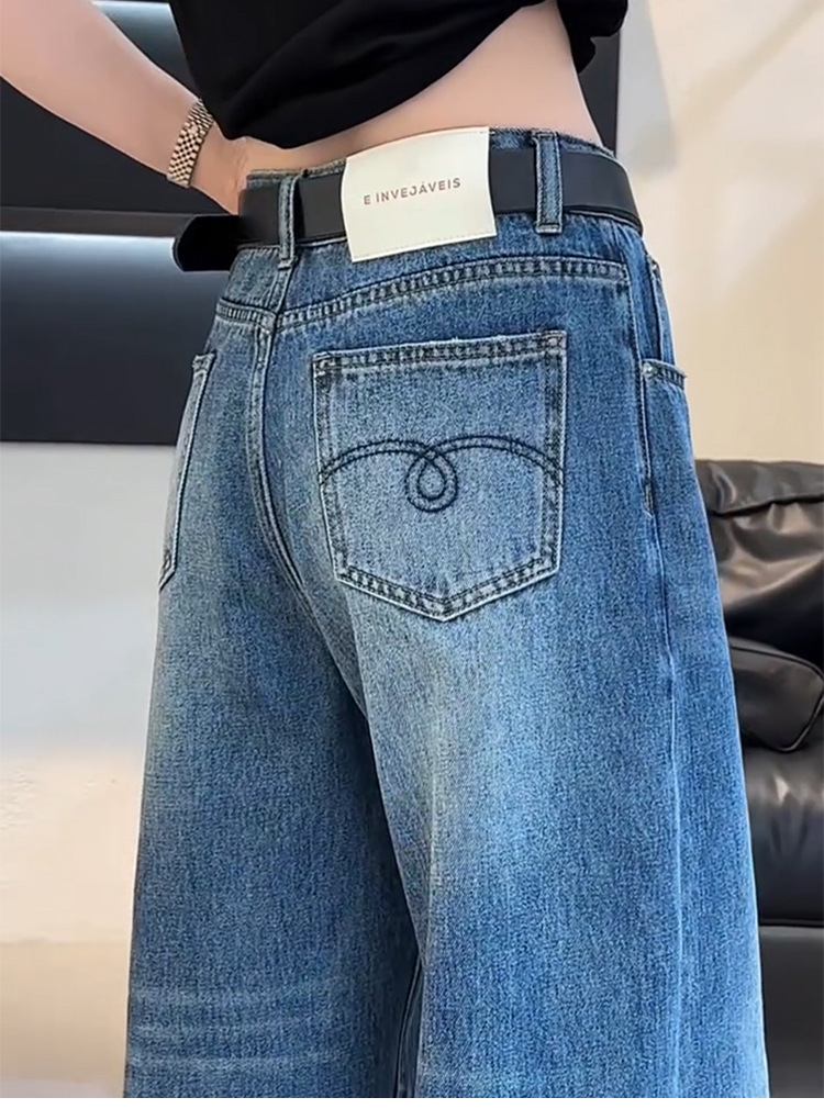 플러스 사이즈 넓은 다리 청바지 여성의 봄 2025 새로운 바나나 바지 통통녀 슬리밍 느슨한 스트레이트 시미 터 바지스토어 가기
