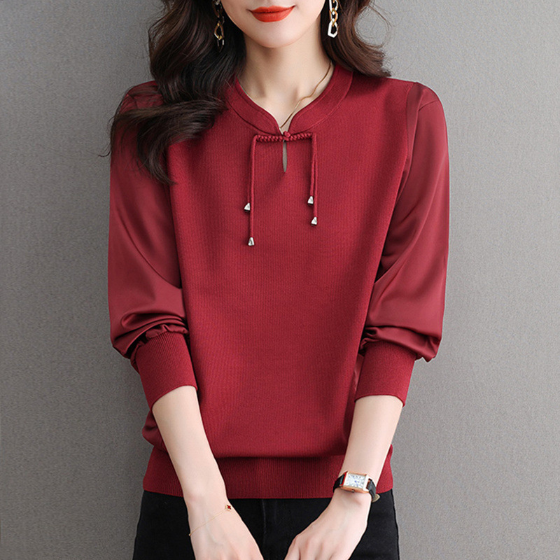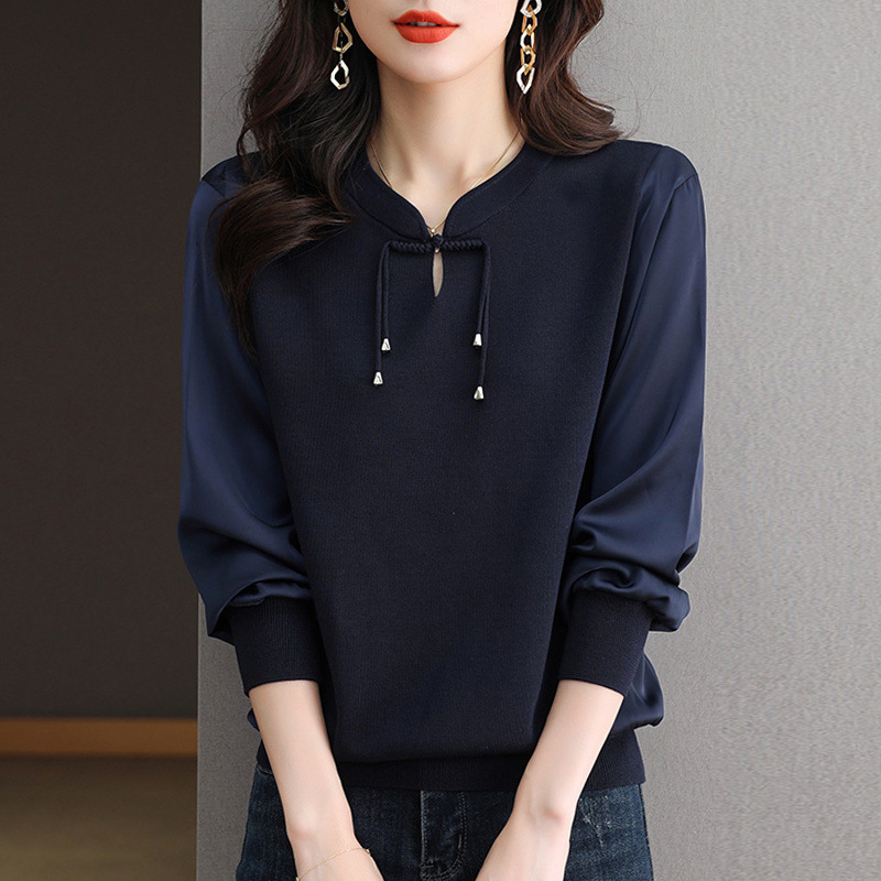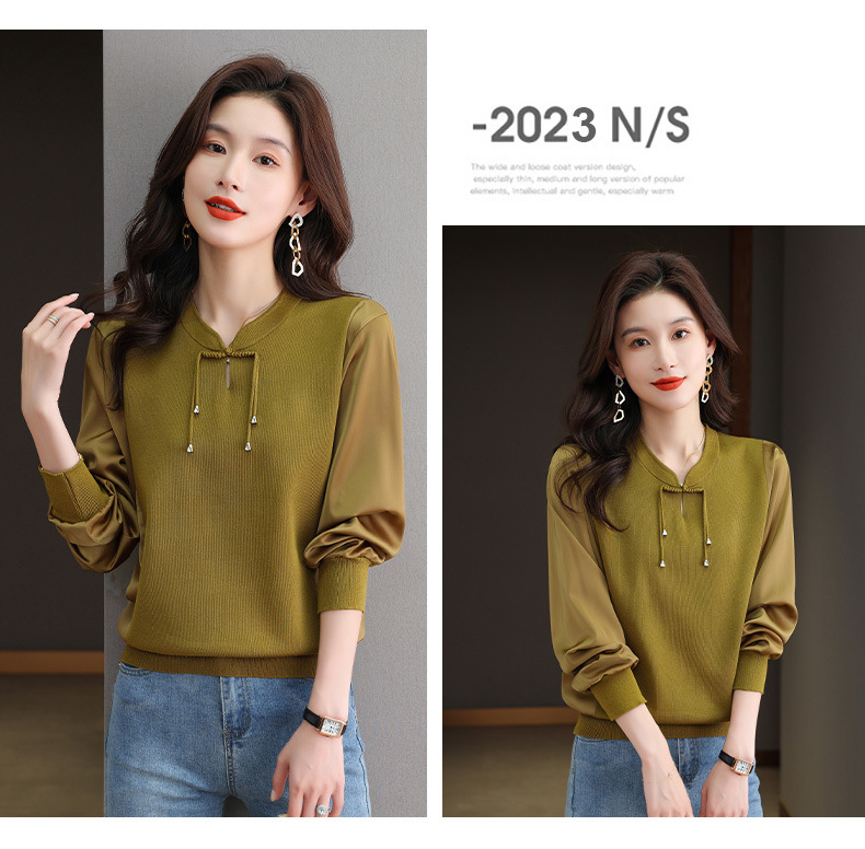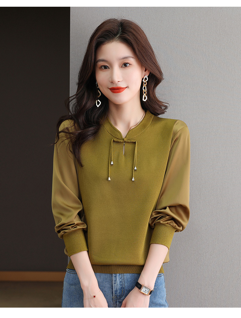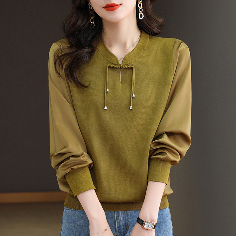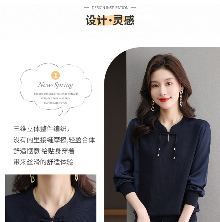새로운 중국 청삼 칼라 쉬폰 셔츠 봄과 가을 2025 뉴 에이지 감소 서양식 느슨한 아이스 실크 셔츠 셔츠 셔츠 셔츠 셔츠 셔츠