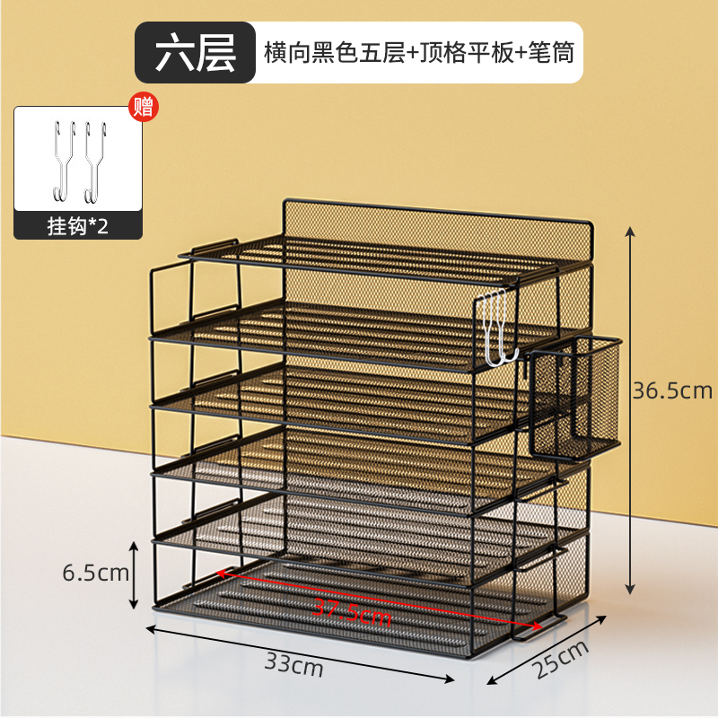 • 6단(가로 블랙 5단 + 상판 + 후크 2개 + 펜홀더)✓