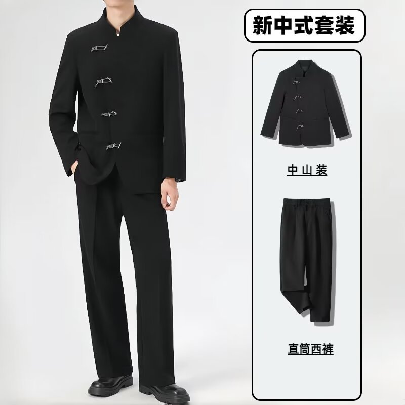 새로운 중국 스타일 중국 스타일 세트 재킷 남성 세트 세트 세트 세트 세트 세트 디자인 약혼 남성 웨딩 세트