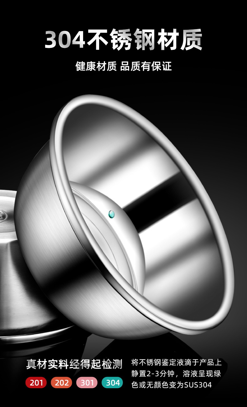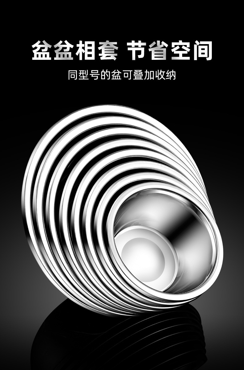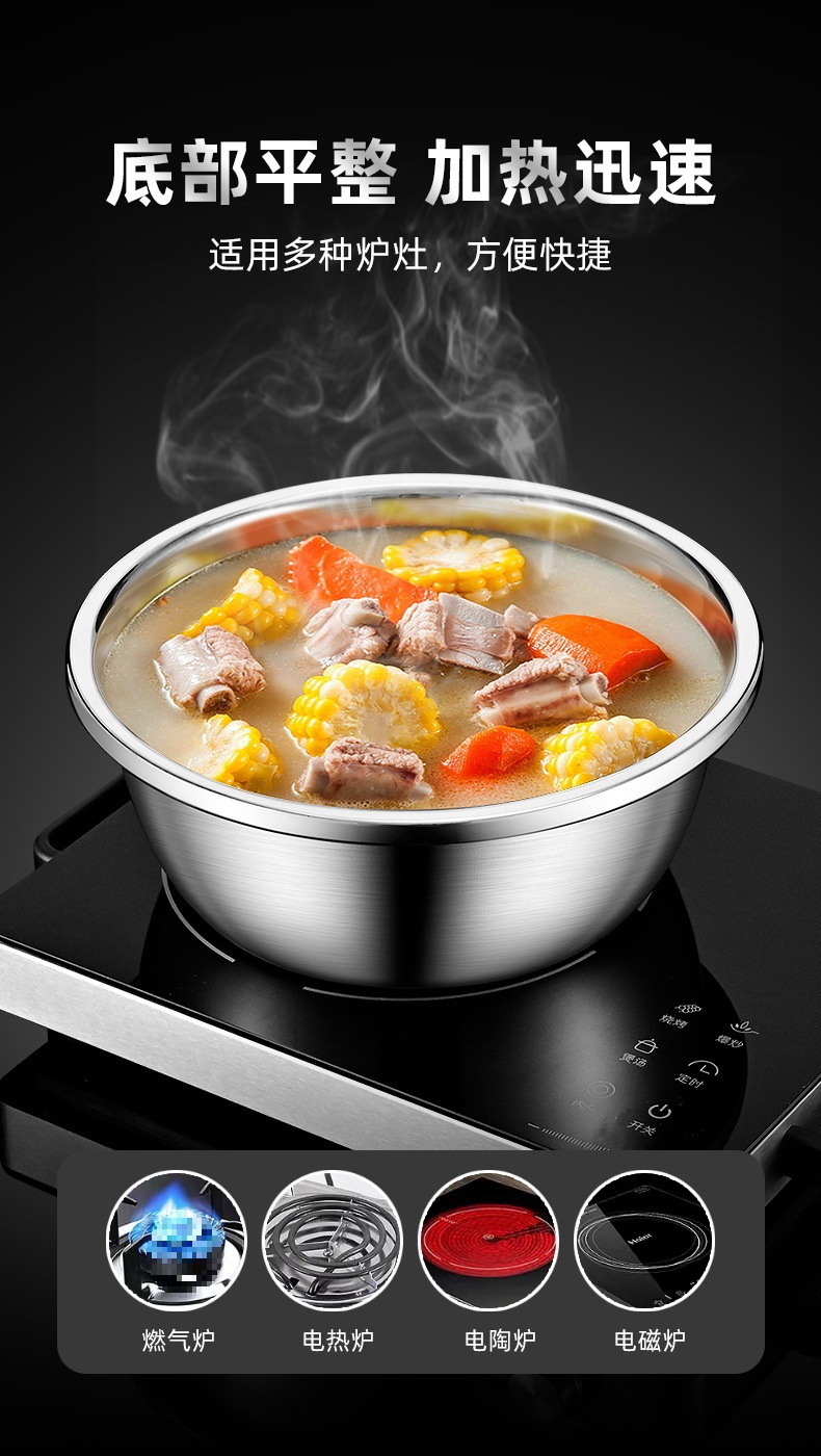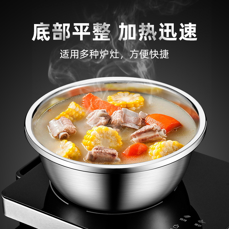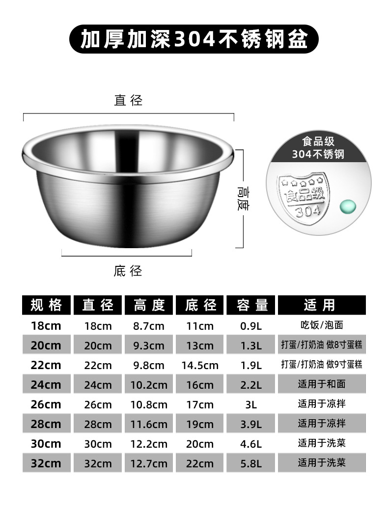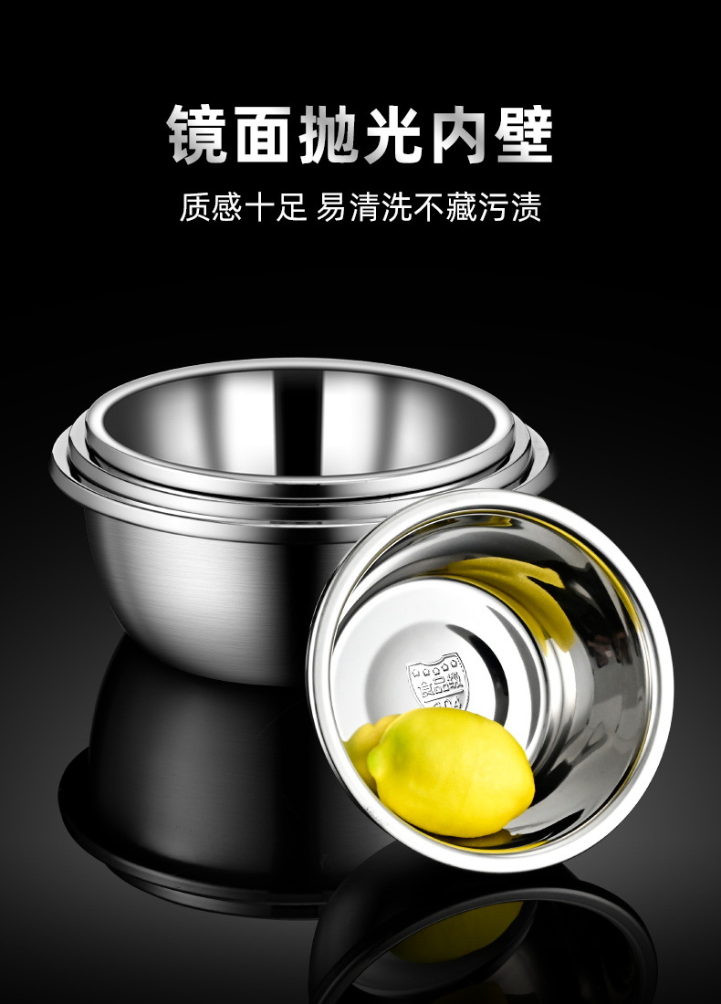가정용 304 스테인레스 스틸 두꺼운 수프 분지 식품 등급 베이킹 및 계란 구타 분지 주방 쌀 씻기 야채 세척 분지