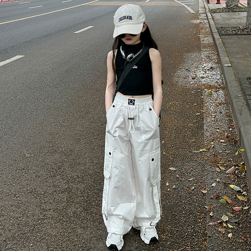 여자 캐주얼 주의 바지 2025 여름 새로운 미국 스타일 높은 허리 재즈 댄스 캐주얼 스포츠 서양식 바지 아동복