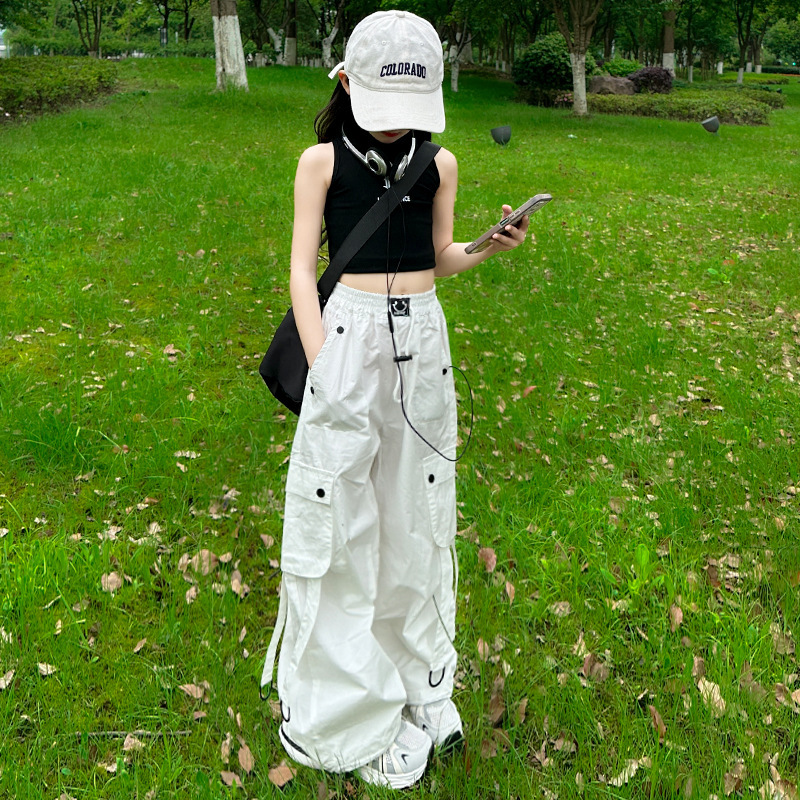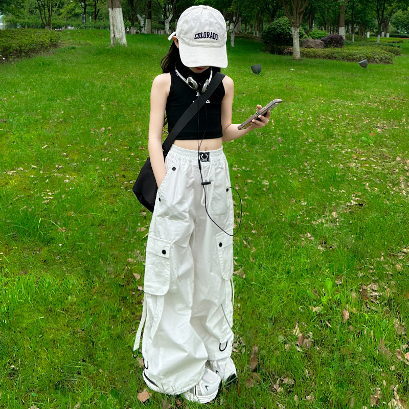 여자 캐주얼 주의 바지 2025 여름 새로운 미국 스타일 높은 허리 재즈 댄스 캐주얼 스포츠 서양식 바지 아동복스토어 가기