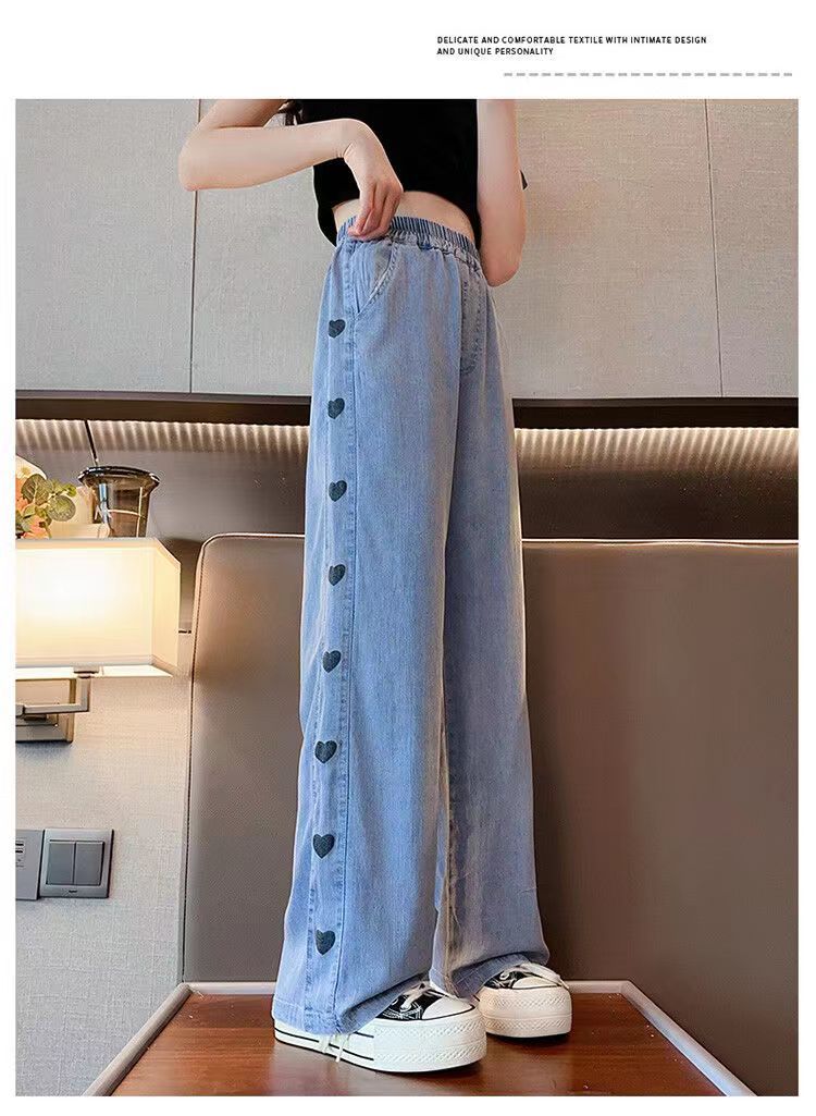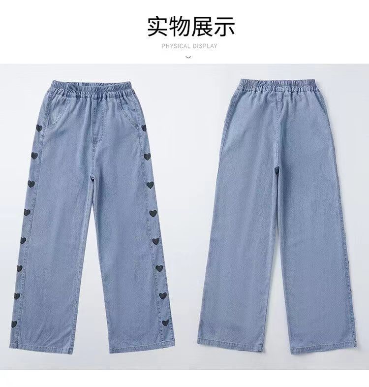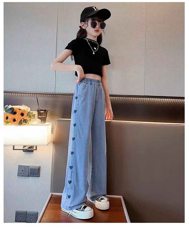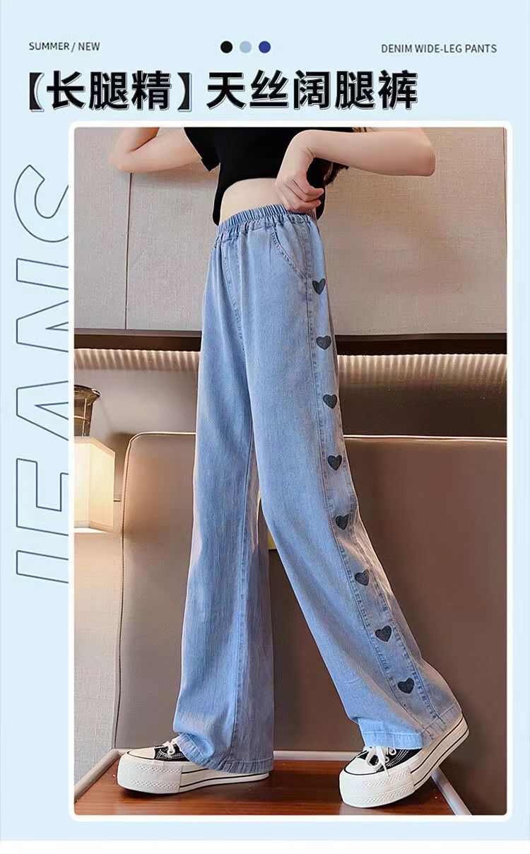 소녀 데님 텐셀 넓은 다리 바지 여름 얇은 중형 어린이 캐주얼 느슨한 모기 방지 바지 여름 통기성 한국 스타일스토어 가기