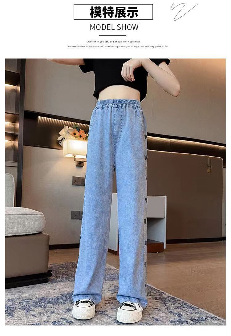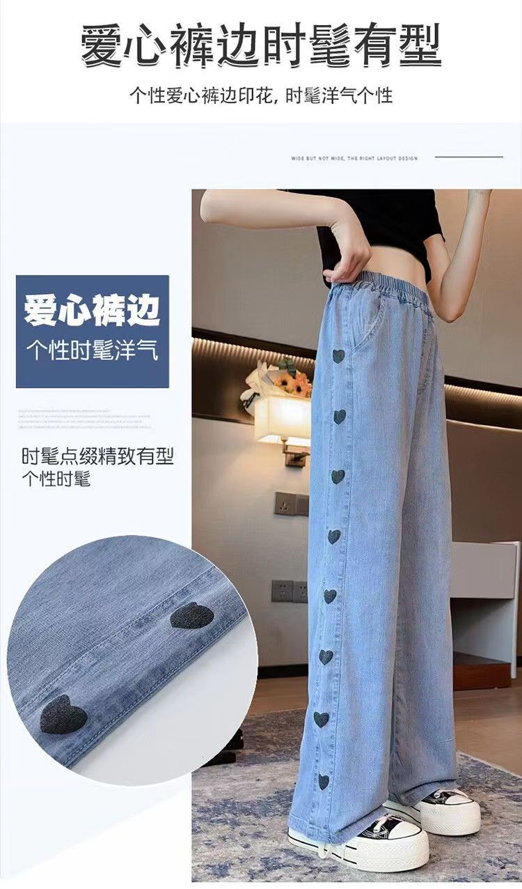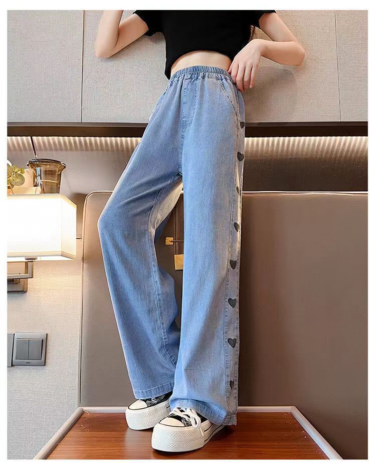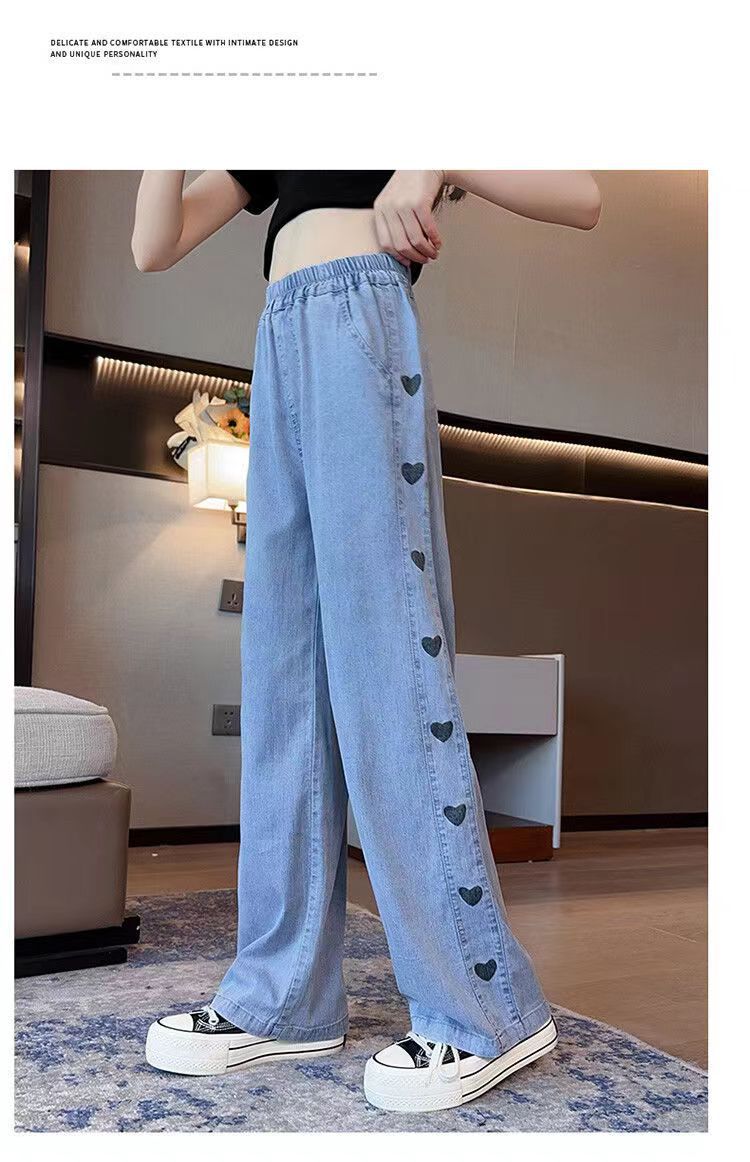 소녀 데님 텐셀 넓은 다리 바지 여름 얇은 중형 어린이 캐주얼 느슨한 모기 방지 바지 여름 통기성 한국 스타일스토어 가기