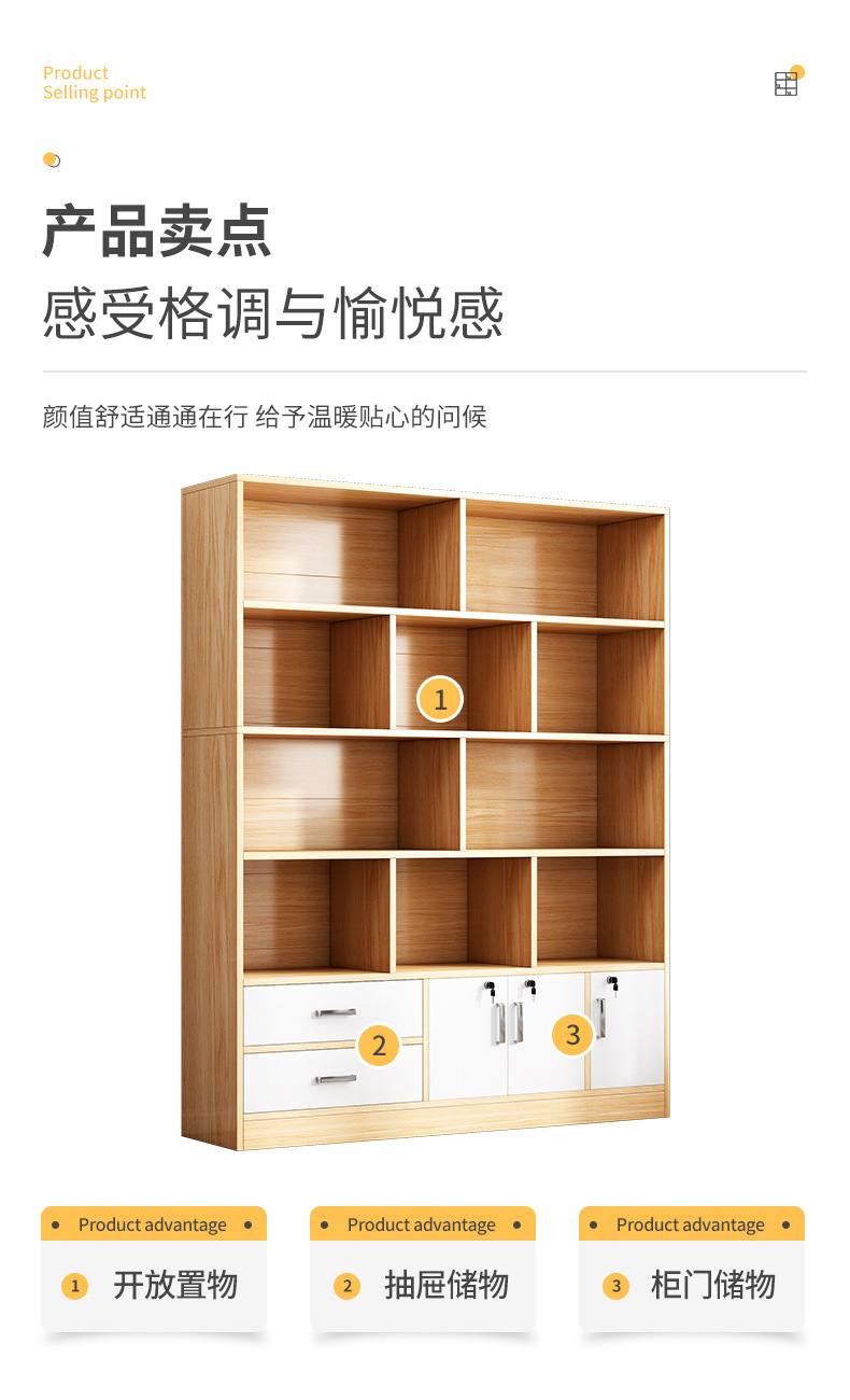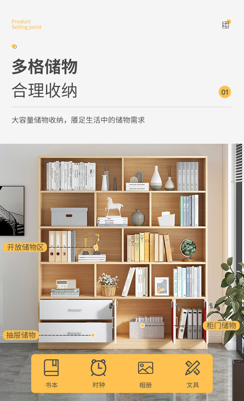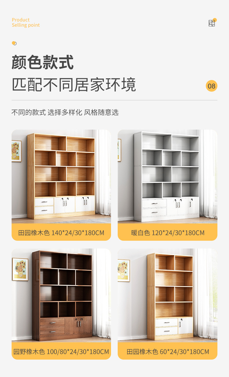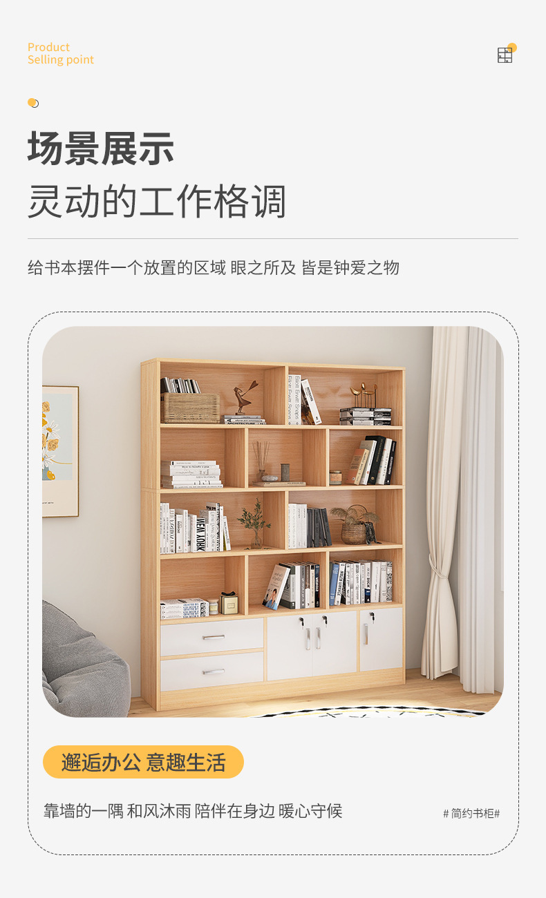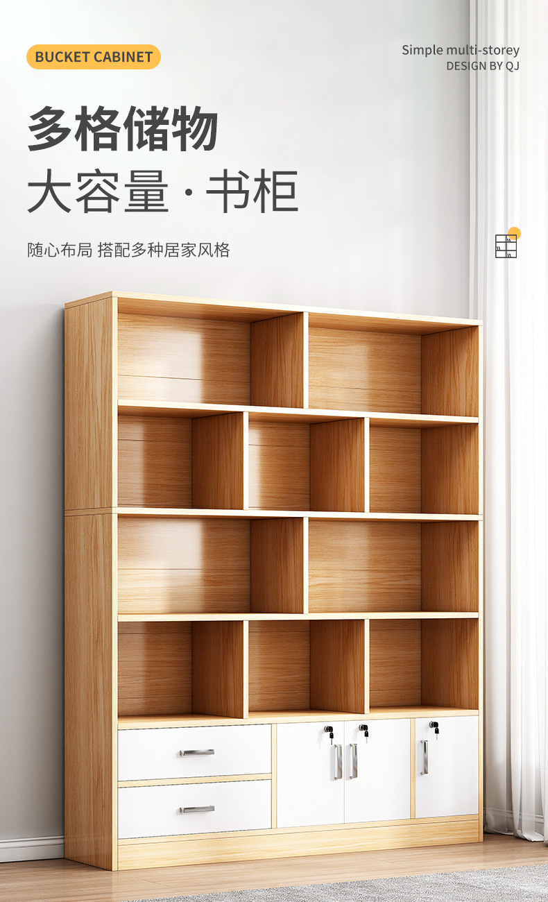 책장 바닥 저장 캐비닛 대용량 저장 캐비닛 나무 사무실 파일 캐비닛 거실 벽 통합 책장스토어 가기