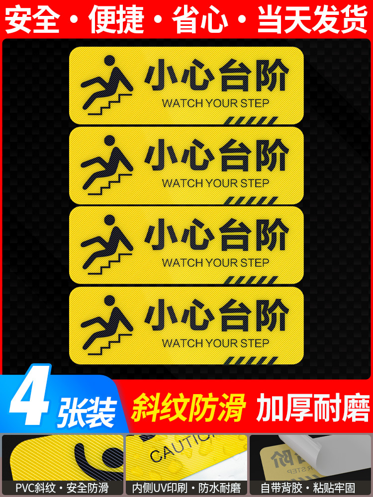 • 조심하세요 계단 [4개 팩]-12x40cm
