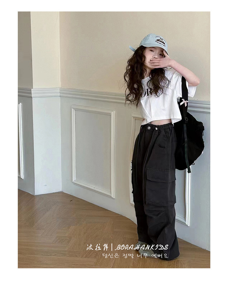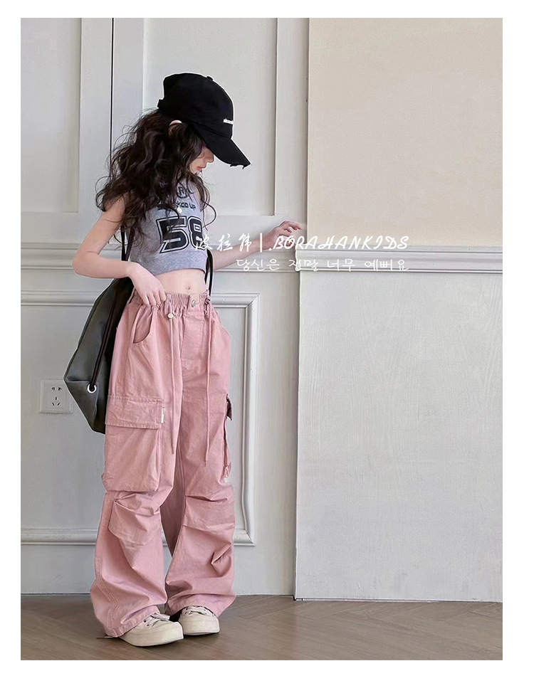 아동복 걸스 스트레이트 툴링 캐주얼 바지 봄과 여름 2025 새로운 어린이 느슨한 바지 소년 올매치 바지