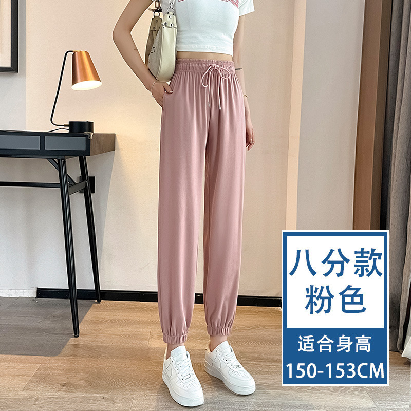아이스 실크 스포츠 바지 여자 여름 얇은 느슨한 다리 슬리밍 새로운 안티 모기 선 스크린 빠른 건조 랜턴 캐주얼 바지