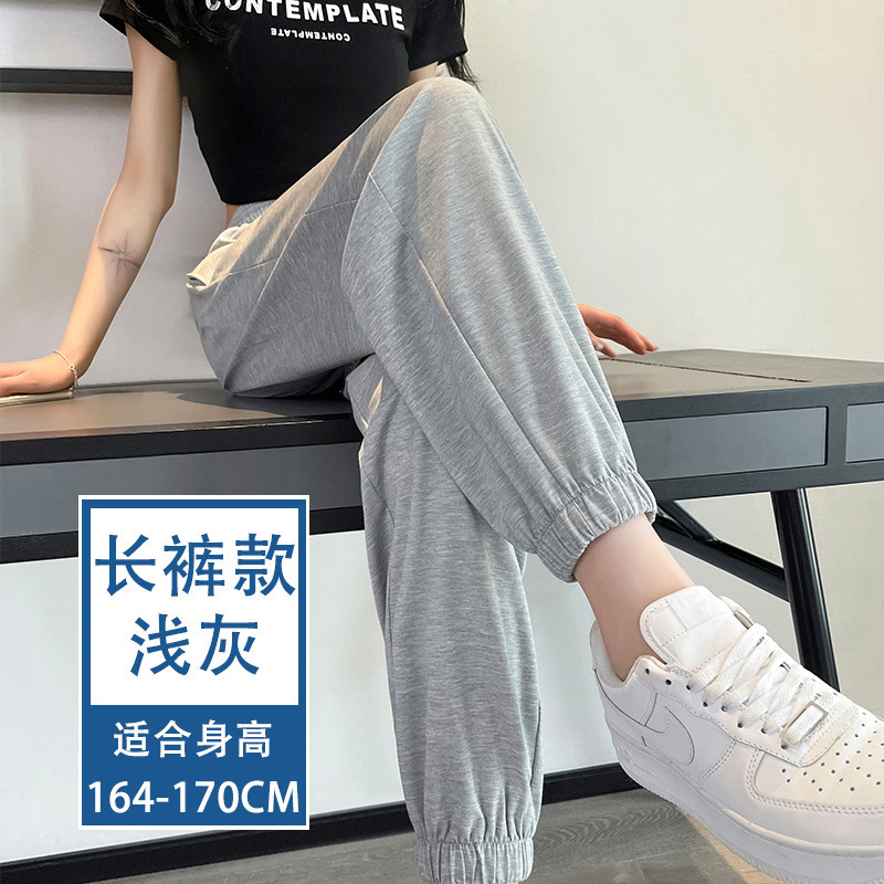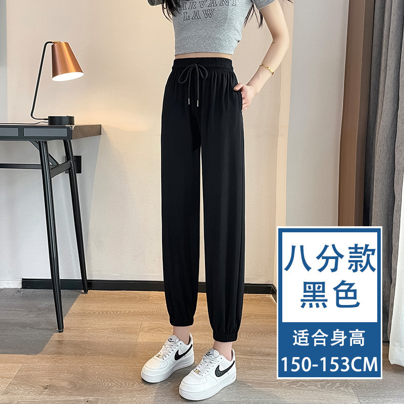 아이스 실크 스포츠 바지 여자 여름 얇은 느슨한 다리 슬리밍 새로운 안티 모기 선 스크린 빠른 건조 랜턴 캐주얼 바지스토어 가기