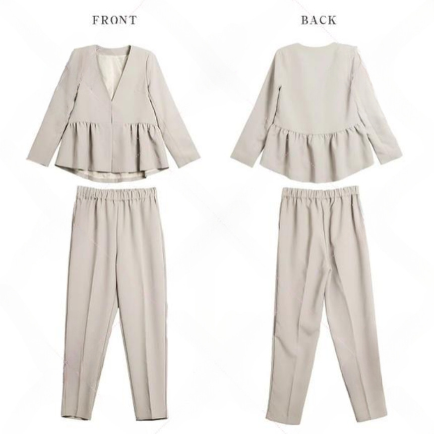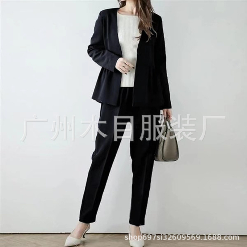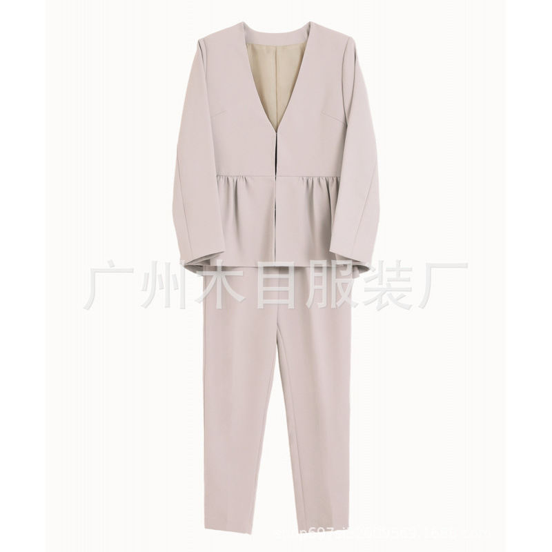 재고 국경 간 핫 세트 세트 여자 2025 새로운 일본 V-넥 스티칭 세트 톱 바지 세트스토어 가기