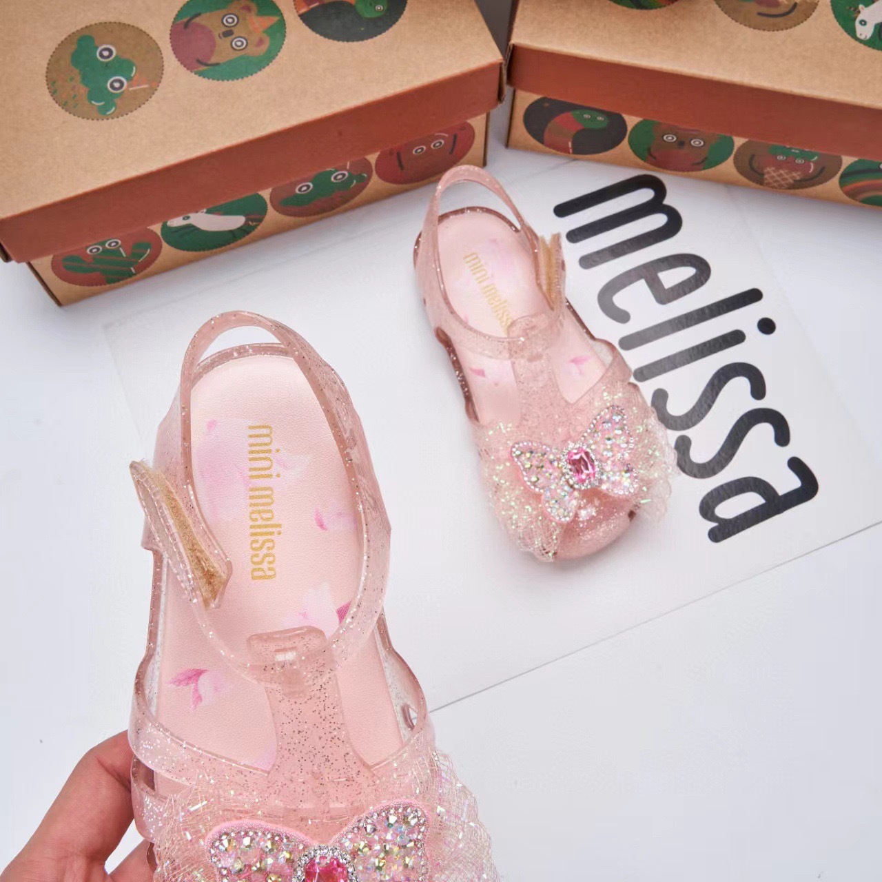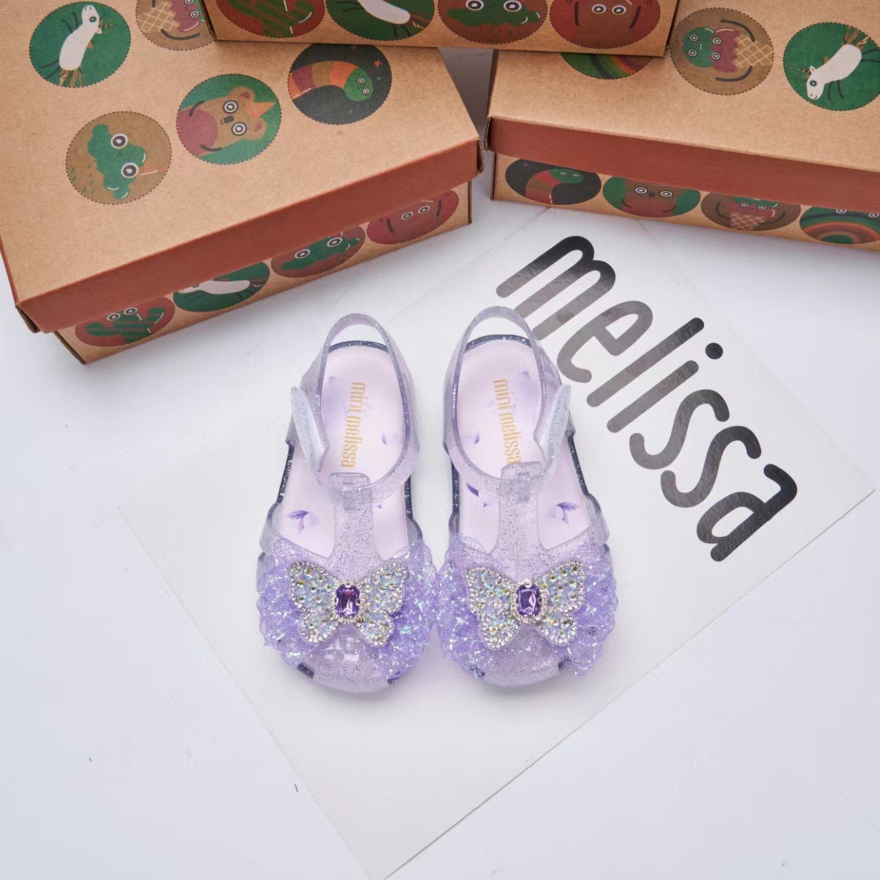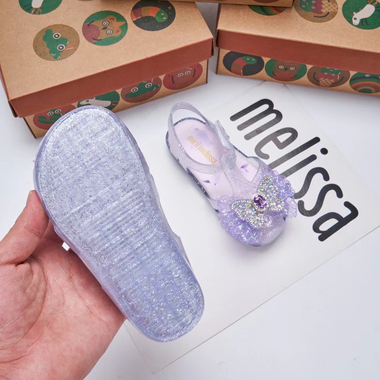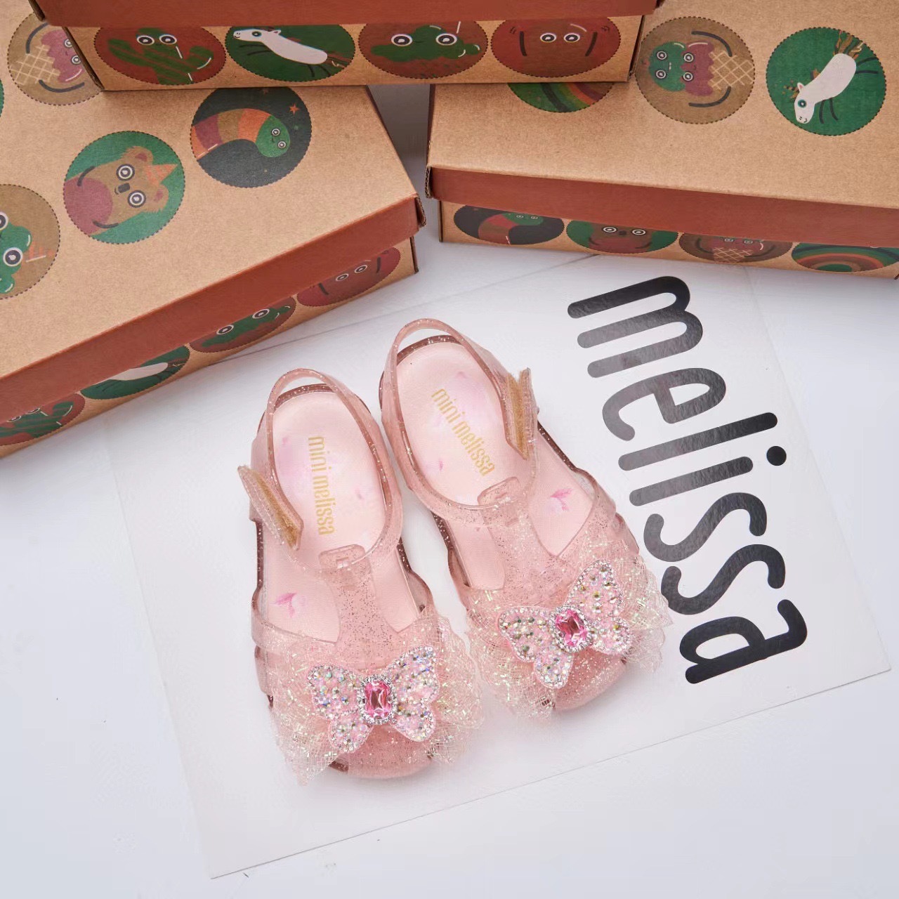 2025 멜리사 새로운 젤리 신발 멜리사 활 어린이 신발 랩 머리 나비 라인스톤 비치 샌들 여성용스토어 가기