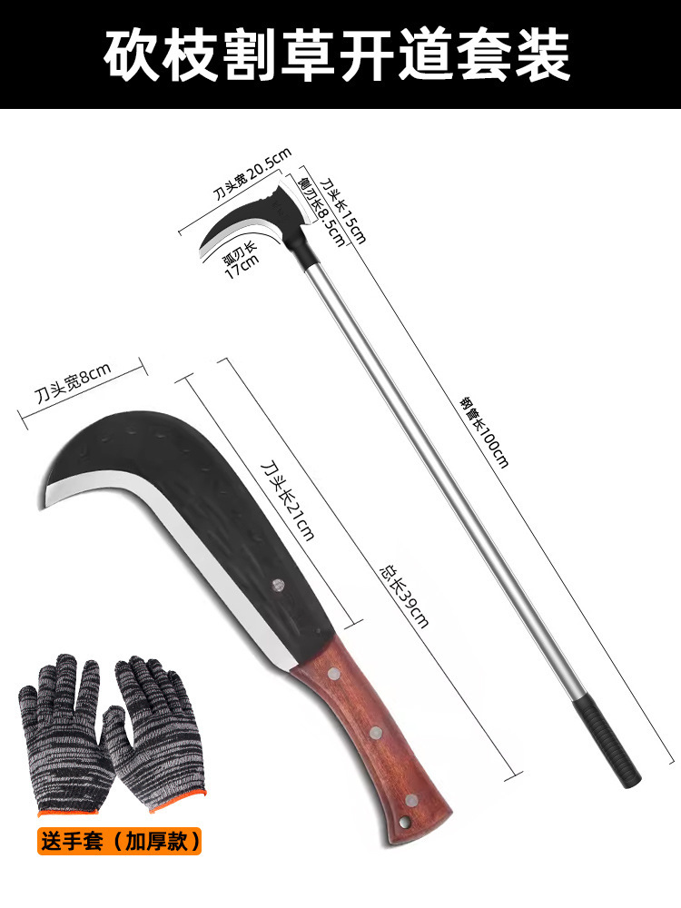 • 일체형 강철 손잡이 겸용 이중 절단 왕 낫 [전체 길이 1m ]-60°다음-15cm