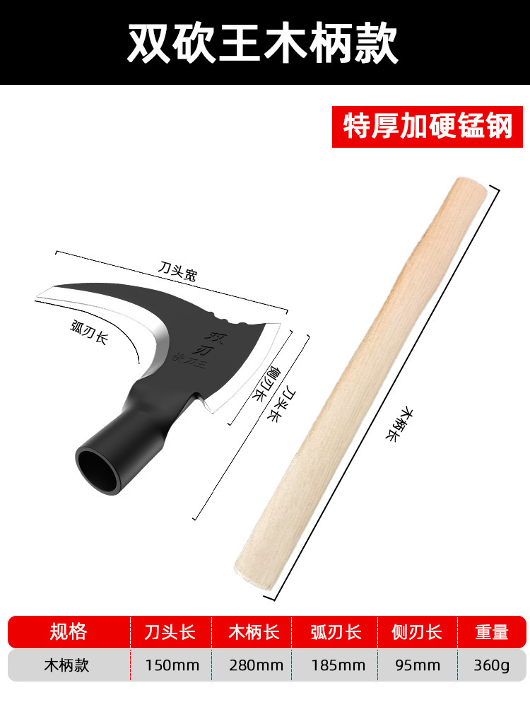 • 일체형 강철 손잡이 겸용 이중 절단 왕 낫 [전체 길이 0.6m ]-60°다음-15c