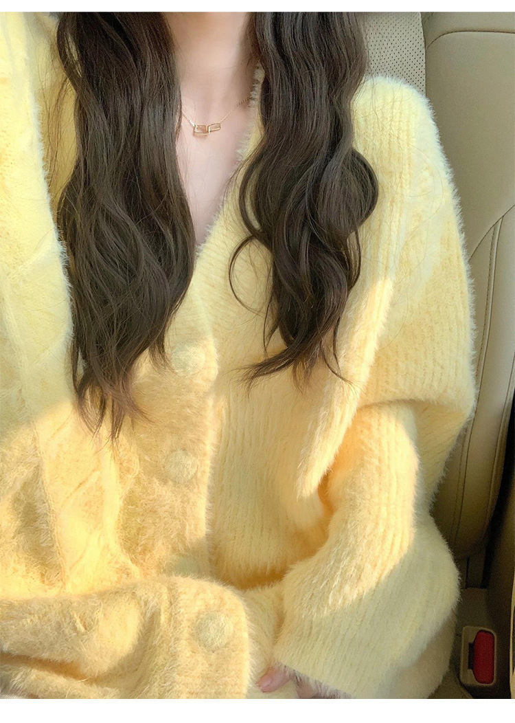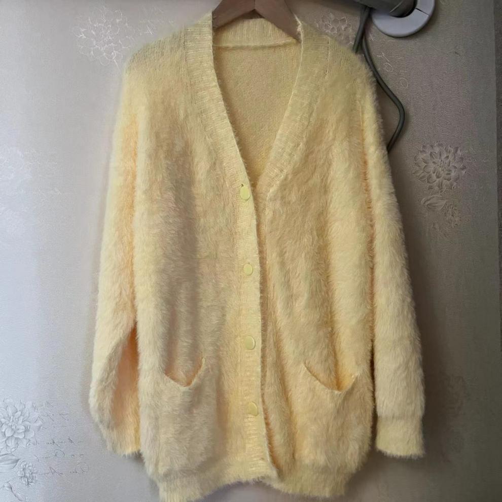 Mahair 놀라운 노란색 부드러운 스웨터 게으른 한국 스타일 젊은 나이 작은 니트 카디건 재킷 봄 여성스토어 가기
