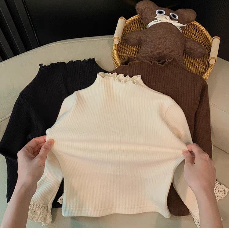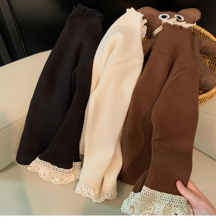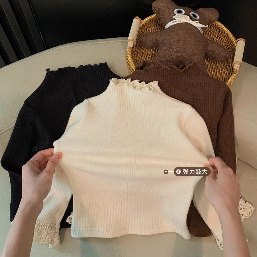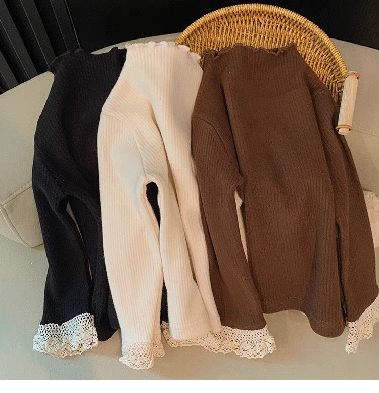 소녀베이스 셔츠 2025 봄과 가을 새로운 도착 아기 소녀 레이스 웨스턴 스타일 올 매치 티셔츠 탑 아동복
