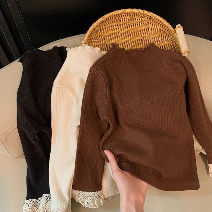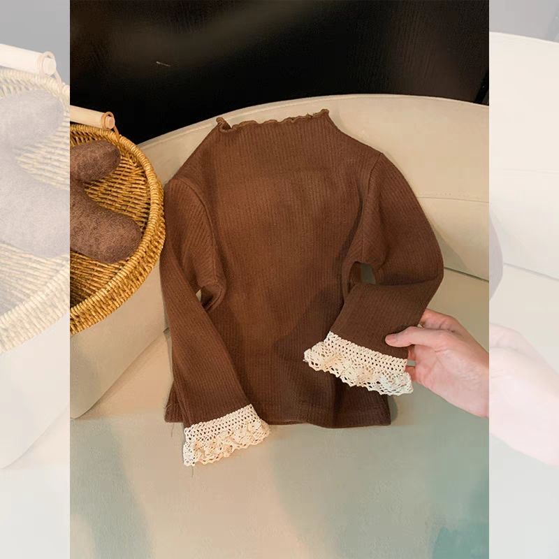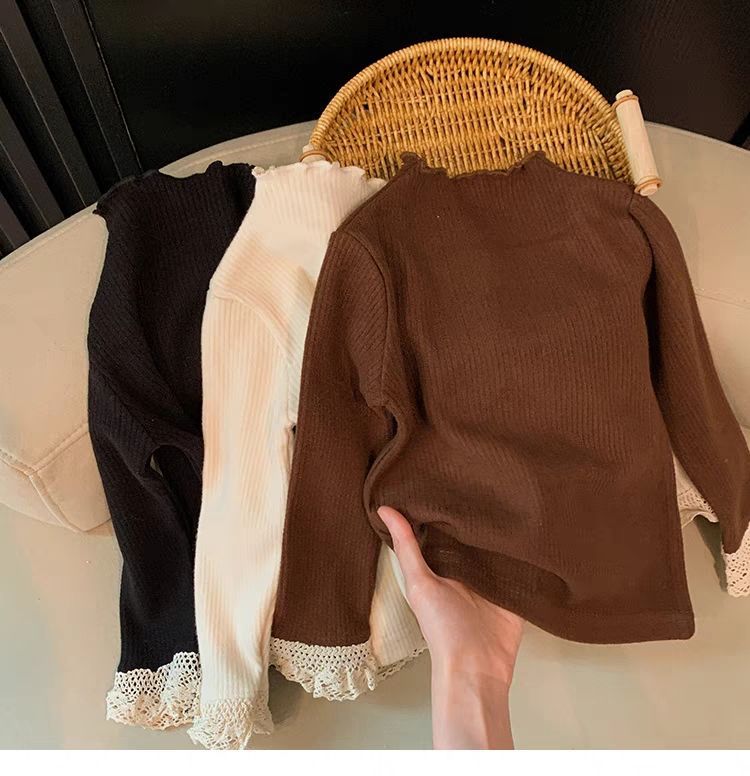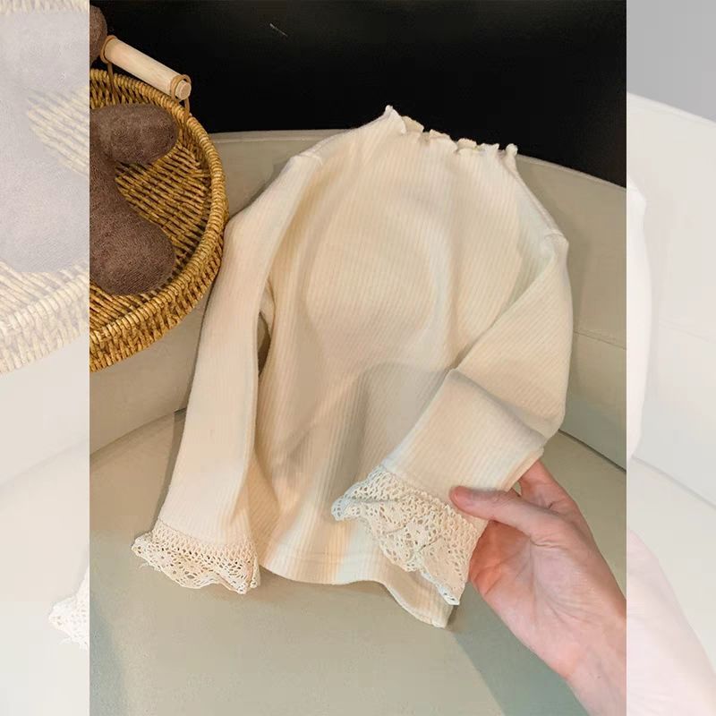 소녀베이스 셔츠 2025 봄과 가을 새로운 도착 아기 소녀 레이스 웨스턴 스타일 올 매치 티셔츠 탑 아동복스토어 가기