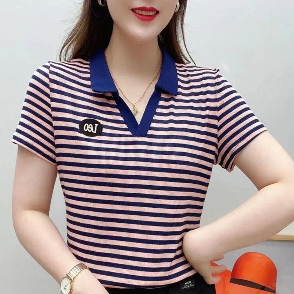2025 년 여름 중년 및 노인 여성 칼라 신스포츠 트렌디 루즈 캐주얼 올매치 여자 반팔 티셔츠스토어 가기