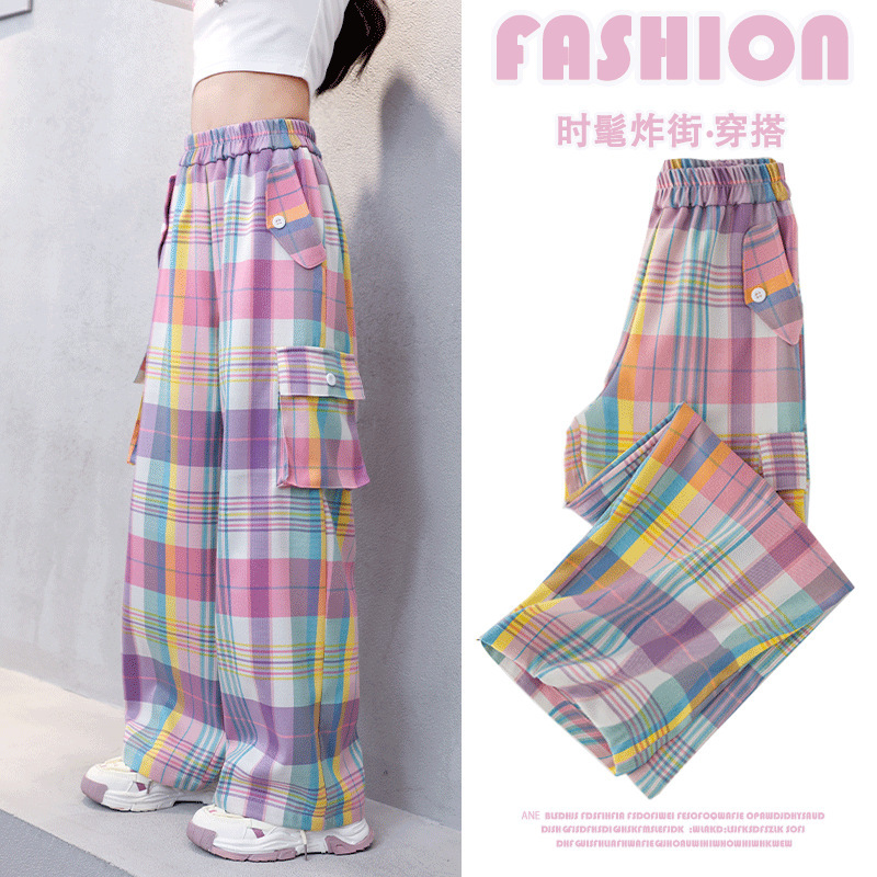 소녀 바지 봄과 여름 2025 새로운 어린이 커버 바지 도파민 소녀 바지 큰 어린이 넓은 다리 캐주얼 바지