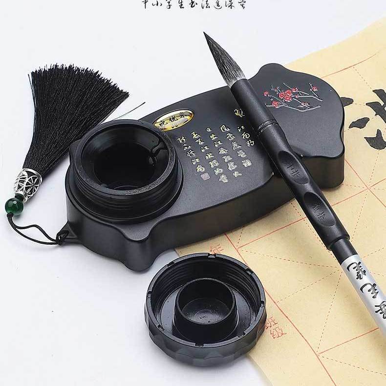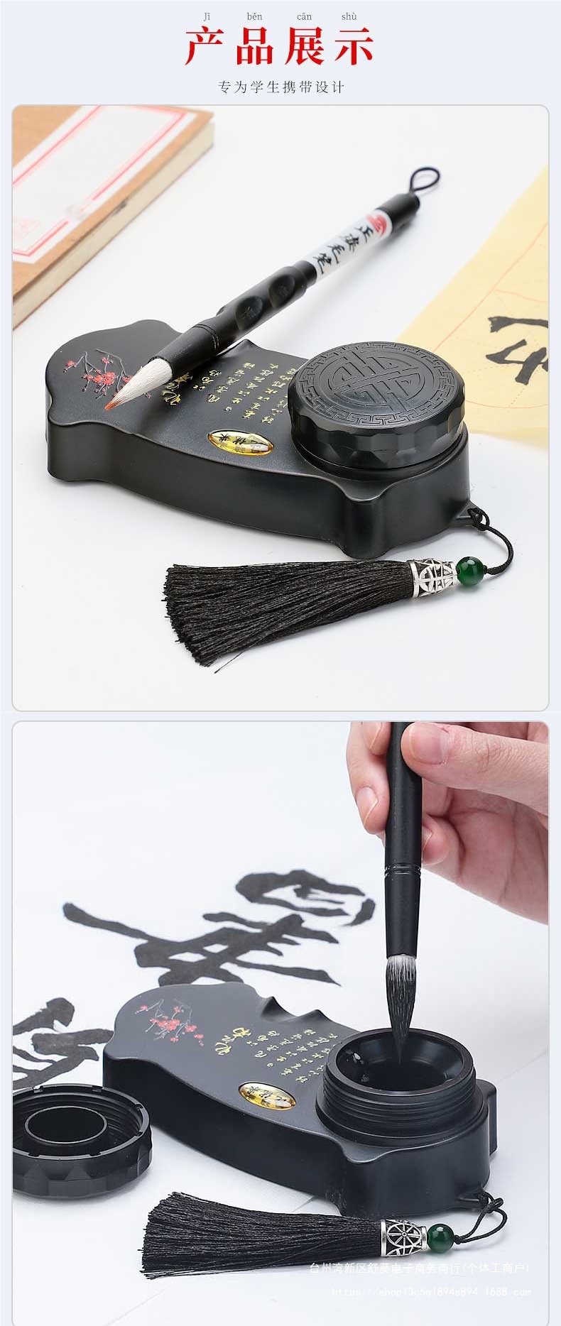 뚜껑 누출 방지 잉크 카트리지 브러시 서예 잉크 플레이트 펜 홀더가있는 다기능 워시 프리 잉크 스톤 건식 잉크 서예 잉크 풀스토어 가기