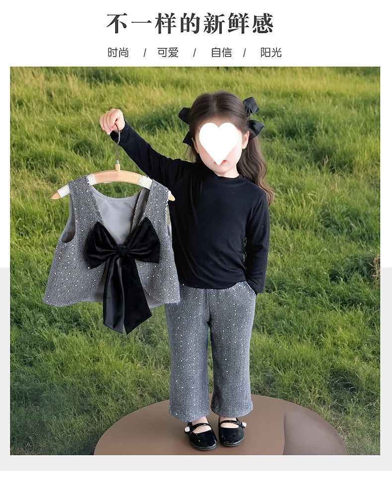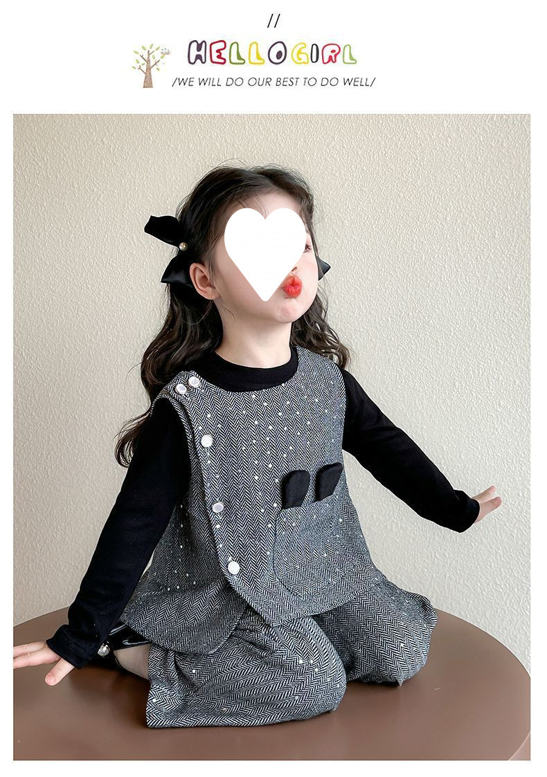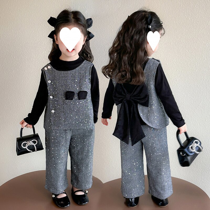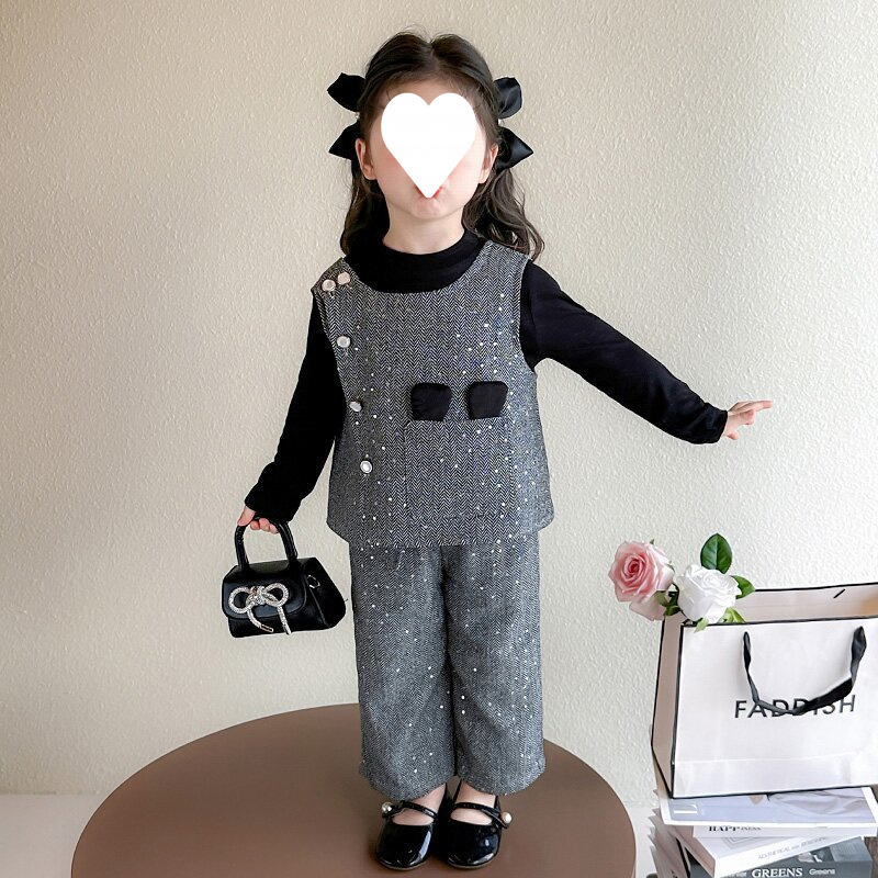 소녀의 봄 세트 2025 새로운 어린이 봄과 가을 소녀 세련된 패션 조끼 향기로운 스타일 3 피스 세트스토어 가기