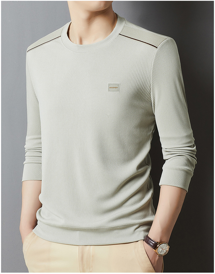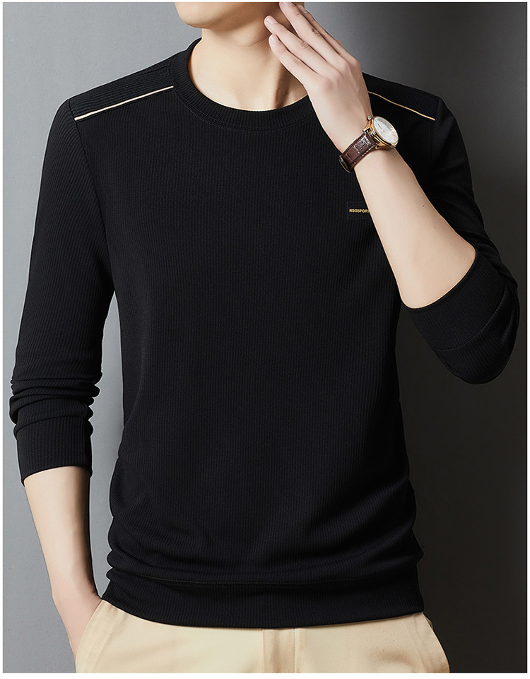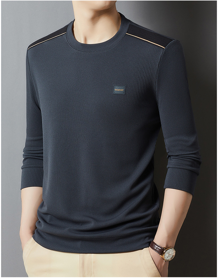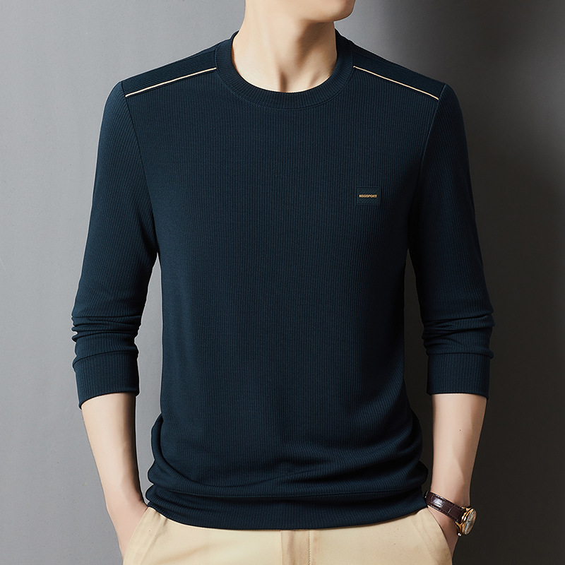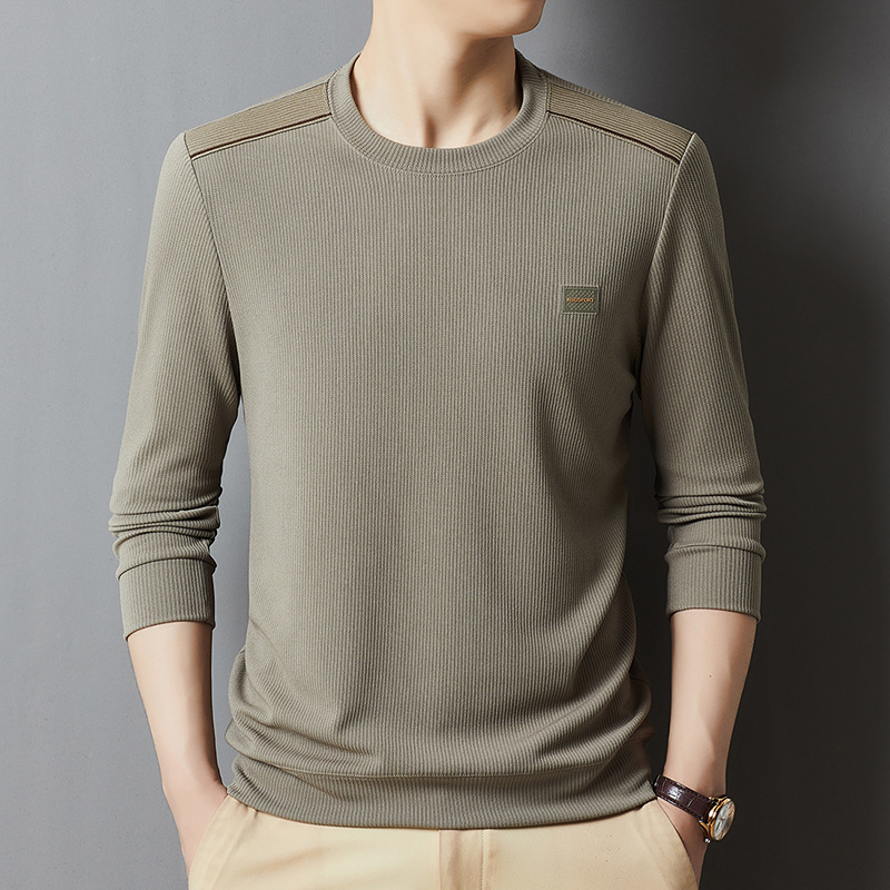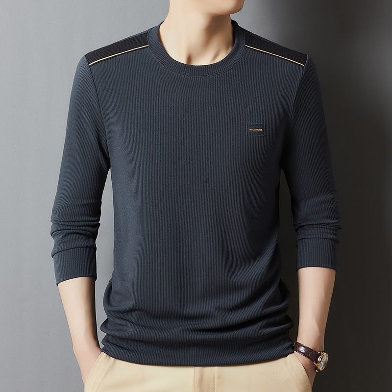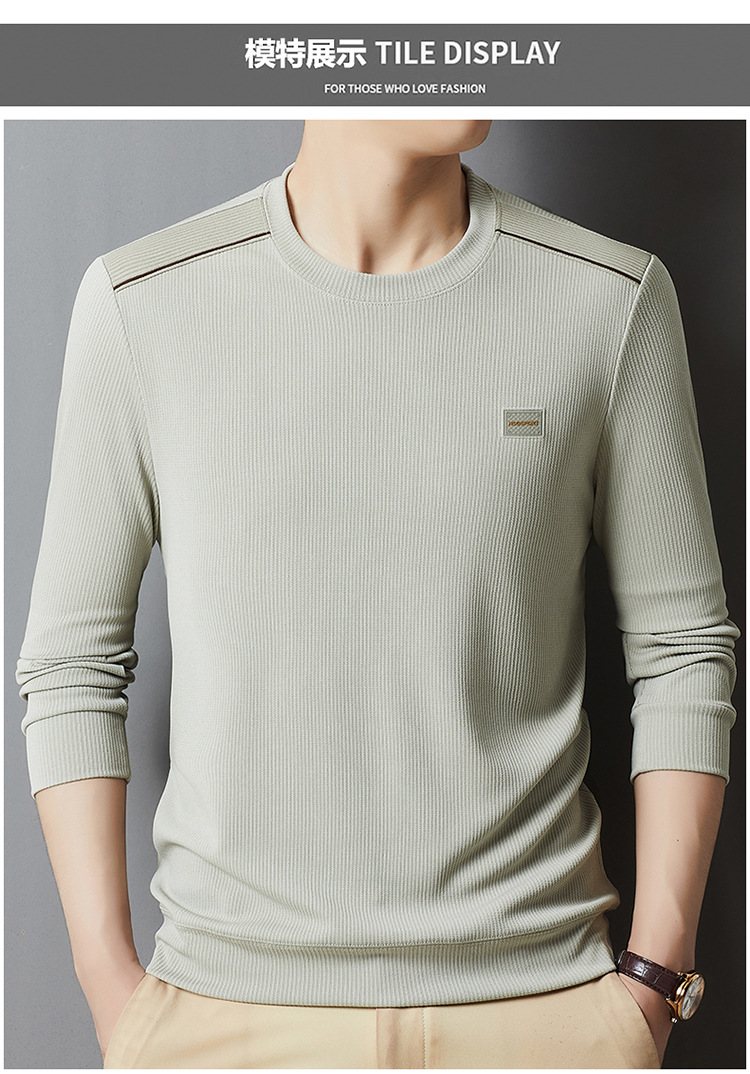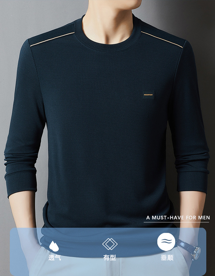 봄과 가을 가슴 표준 남성 긴팔 티셔츠 얇은 트렌디 자수 하이 엔드 티셔츠 크루 넥 스포츠 스웨터베이스 셔츠