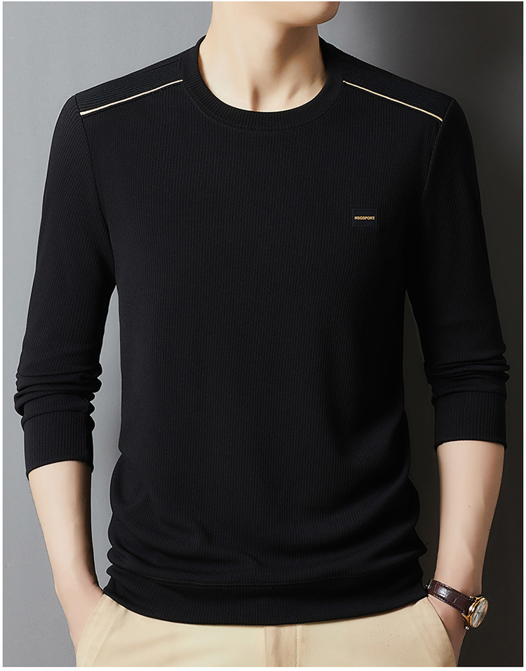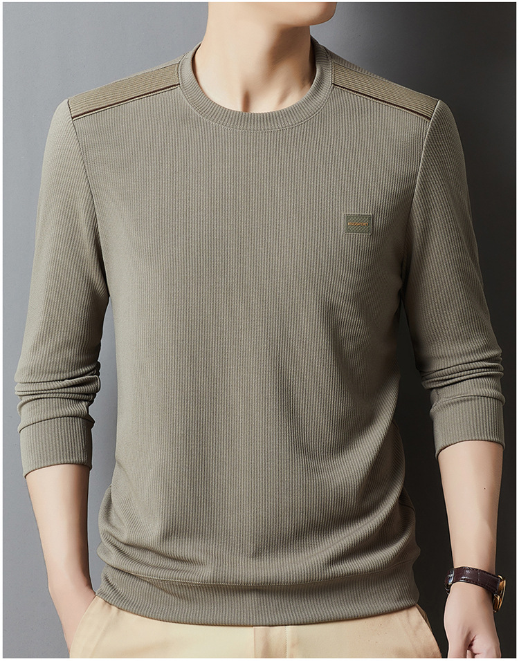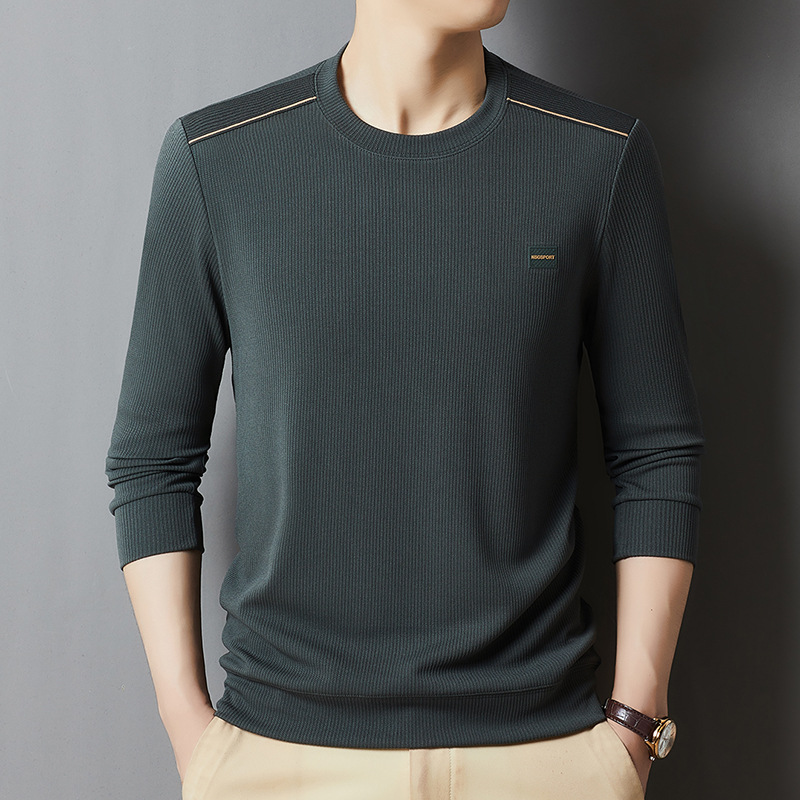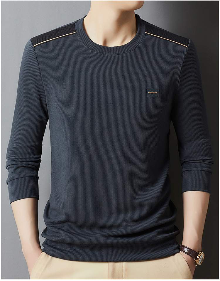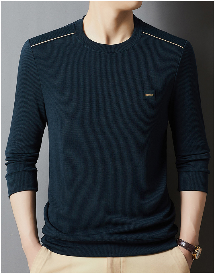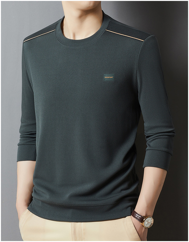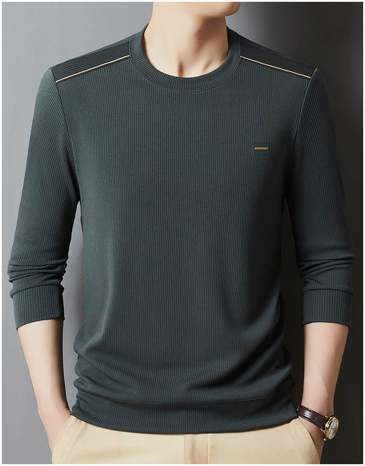 봄과 가을 가슴 표준 남성 긴팔 티셔츠 얇은 트렌디 자수 하이 엔드 티셔츠 크루 넥 스포츠 스웨터베이스 셔츠