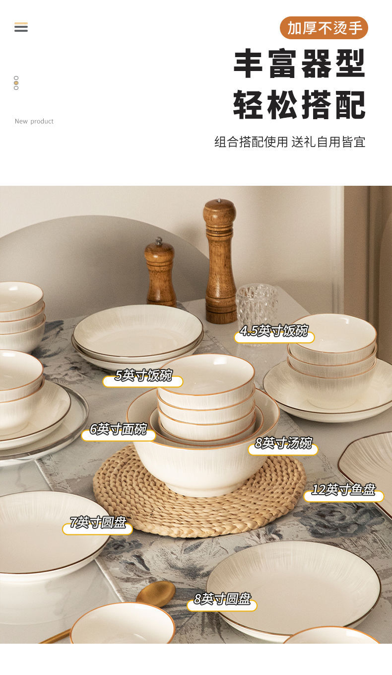 요리와 요리 2025 세트 새로운 요리 및 식기 가정용 세트 쌀국수 그릇 조합 집들이 선물 높은 색상의 가치 세라믹
