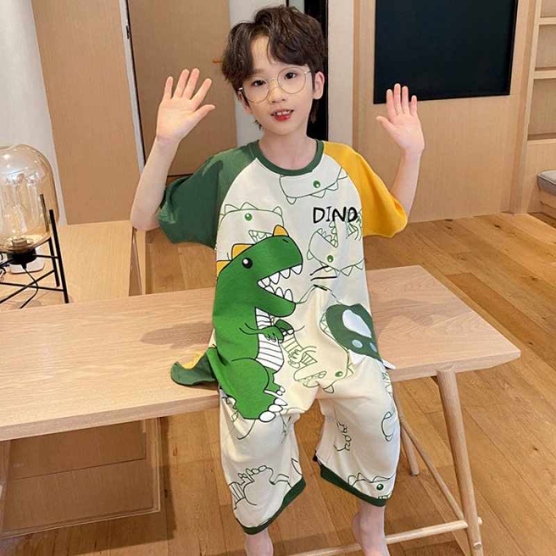 어린이 잠옷 소년 여름 순면 반팔 반감기 여름 얇은 남자 아기 잠자는 가방 홈 옷