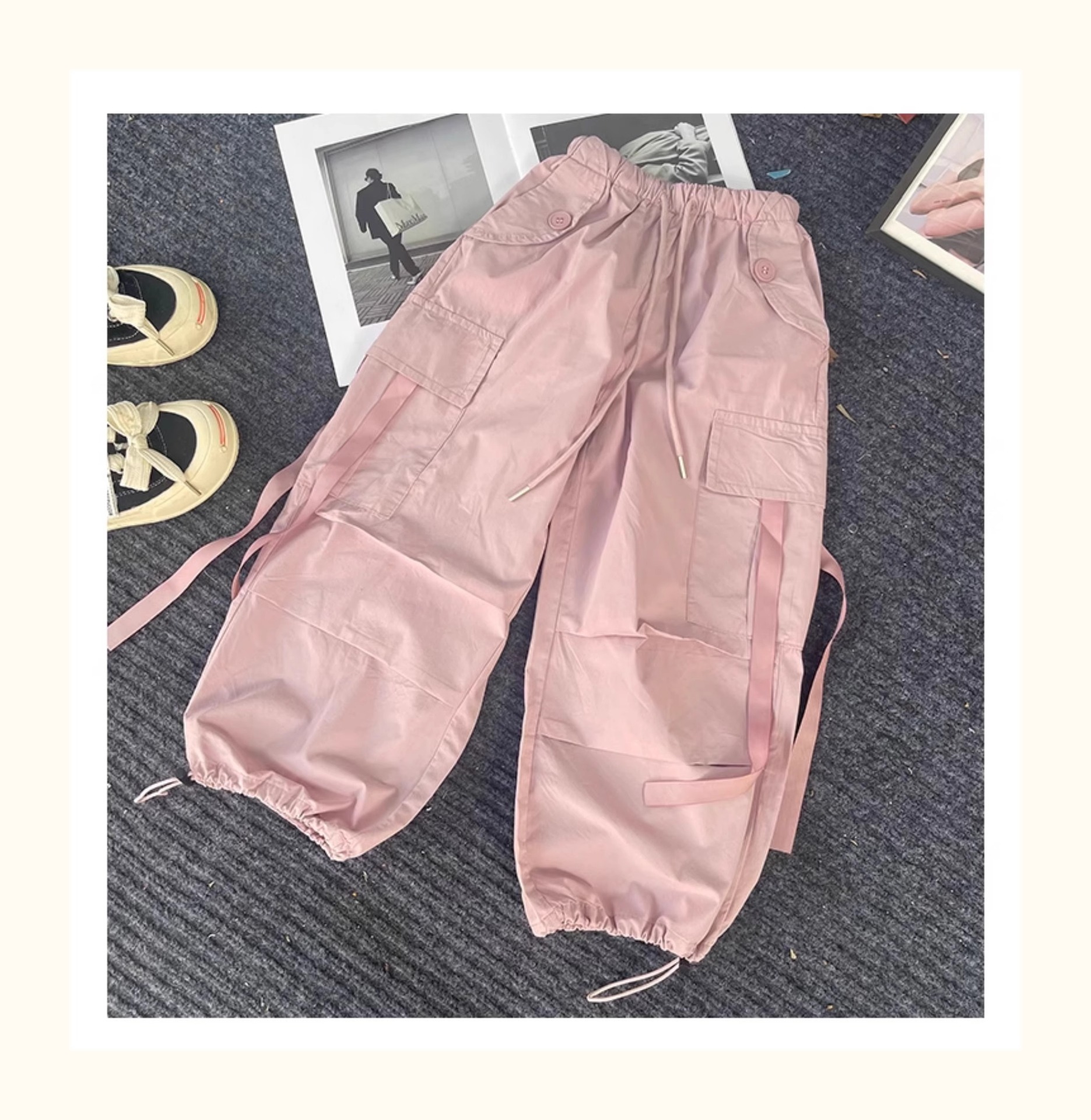 소녀 캐주얼 클로 바지 2025 봄과 가을 새로운 도착 소녀 유행 느슨한 스파이스 소녀 스타일 리본 긴 바지스토어 가기
