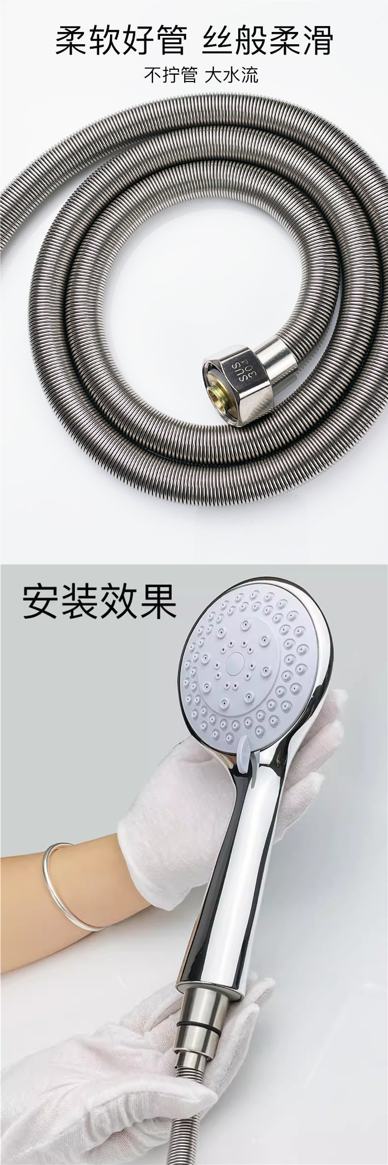 샤워 호스 304 스테인레스 스틸 욕실 수도관 샤워 헤드 호스 온수기 액세서리 배수 유니버설