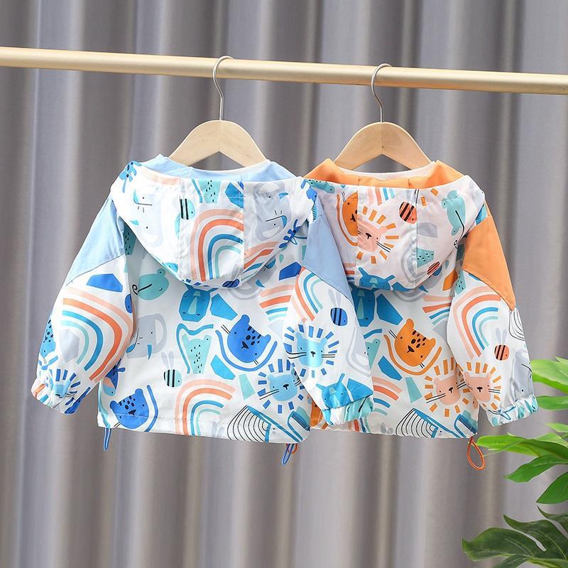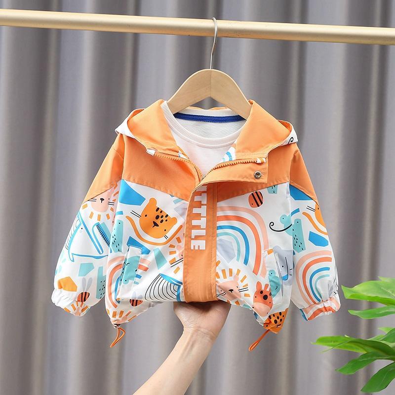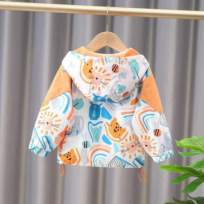 • 오렌지색 동물 전체 프린트 코트, 봄, 가을 스타일