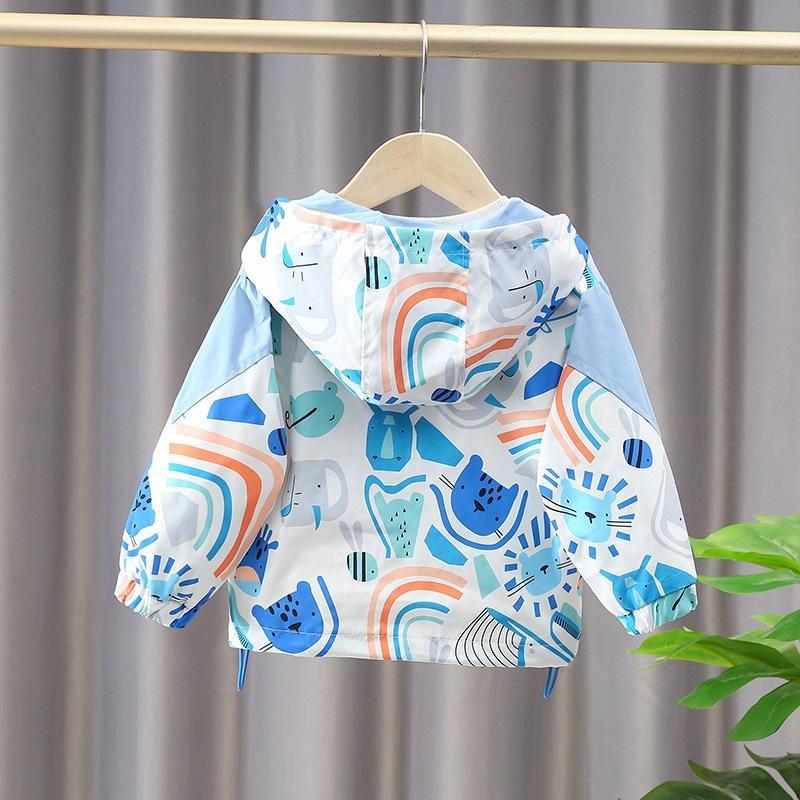 • 블루 동물 전체 프린트 코트, 봄, 가을