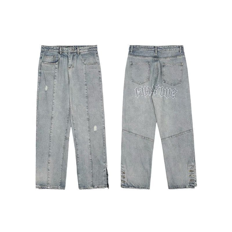유럽과 미국의 하이 스트리트 트렌디 브랜드 자수 가슴 캐주얼 바지 남성 바이브 스타일 블루 루즈 힙합 프라이드 스트리트 청바지 트렌디스토어 가기
