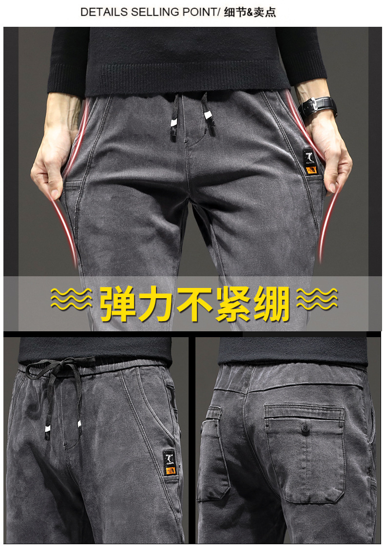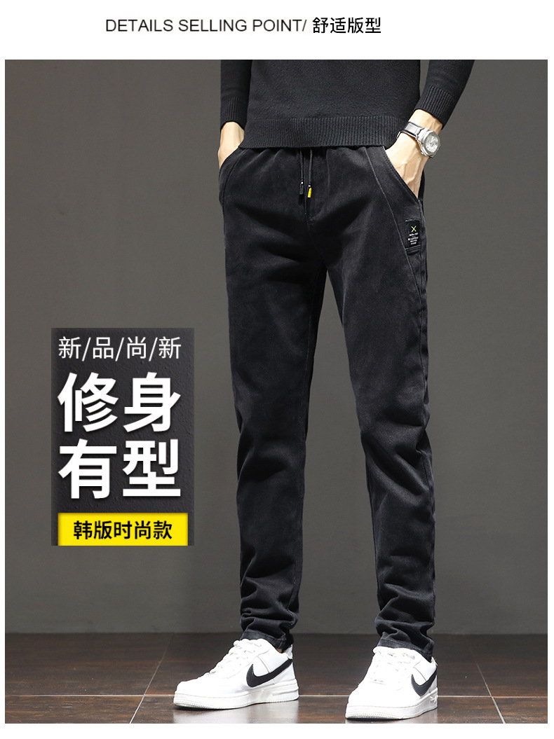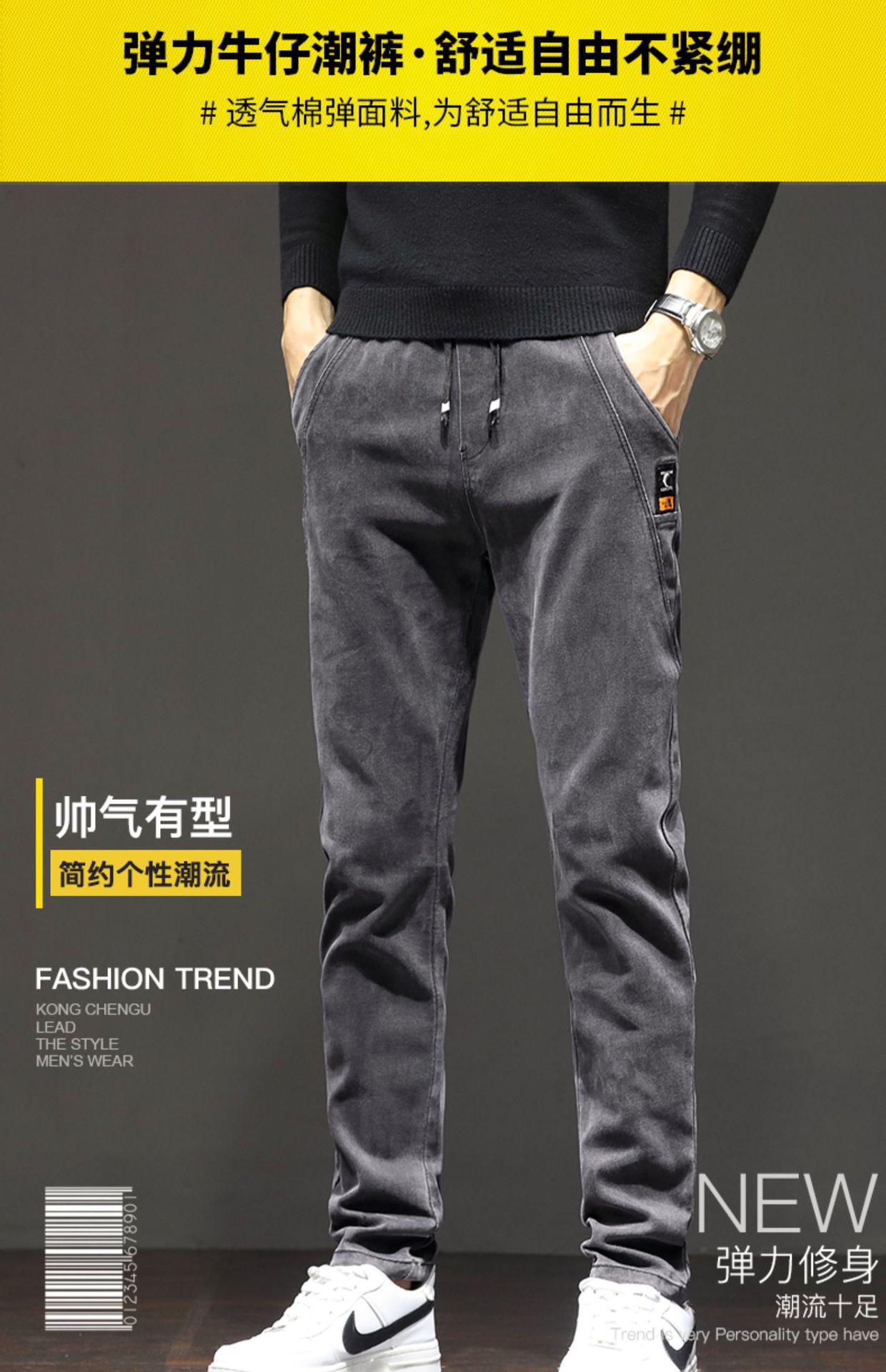 남자 청바지 한국 유행 작은 직선 다리 광저우 신탕 캐주얼 바지 봄과 가을 엘라스토머 허리 크레인 바지