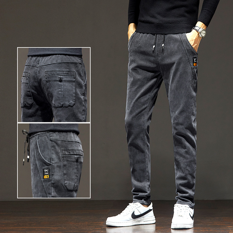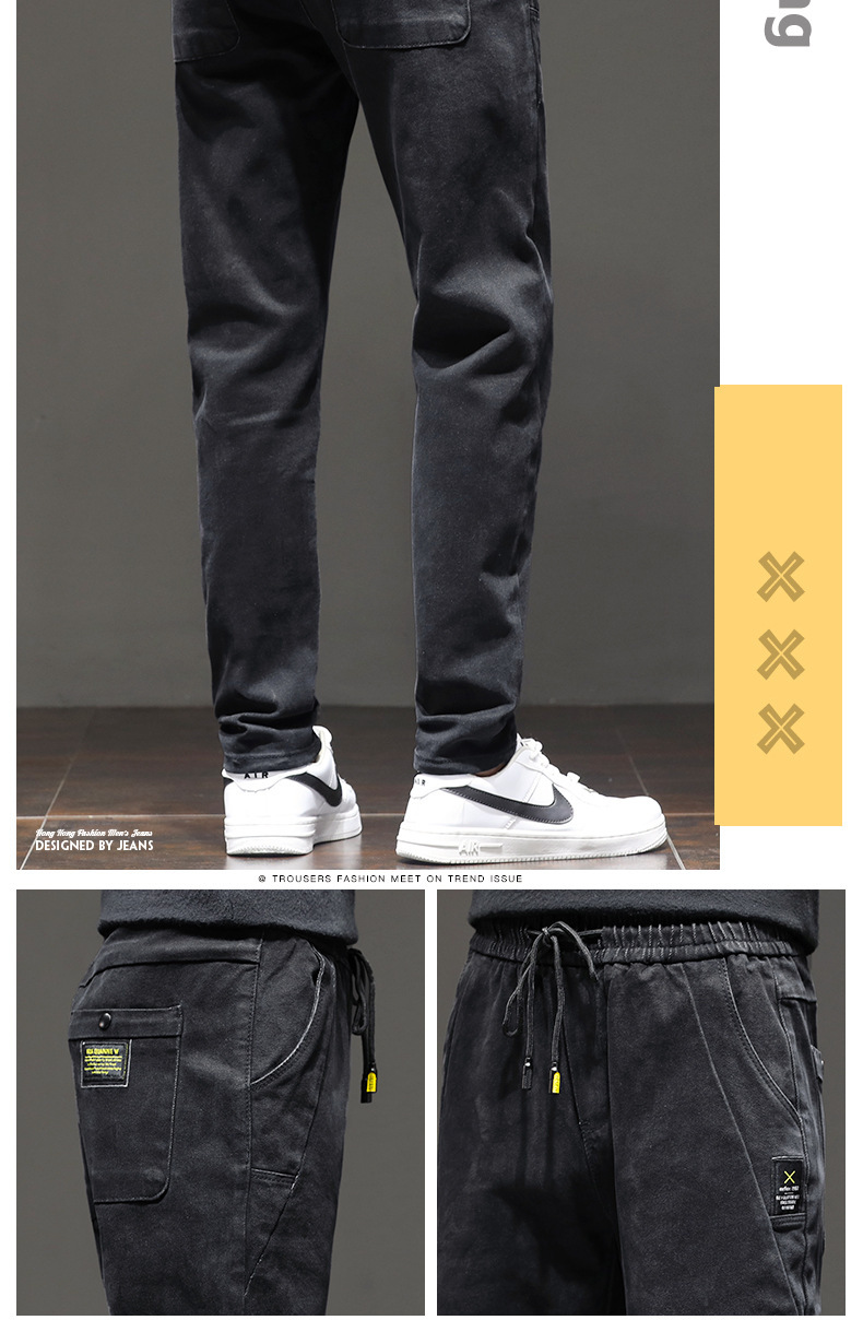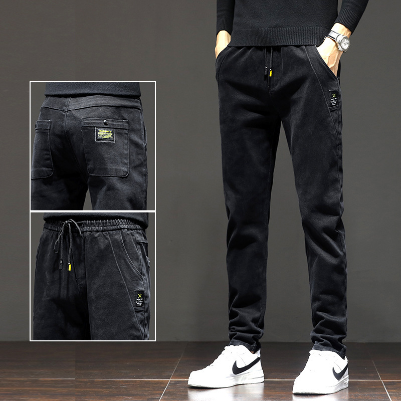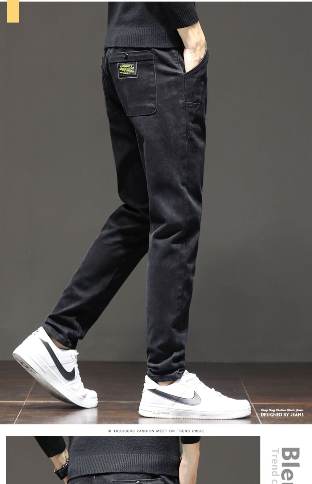 남자 청바지 한국 유행 작은 직선 다리 광저우 신탕 캐주얼 바지 봄과 가을 엘라스토머 허리 크레인 바지