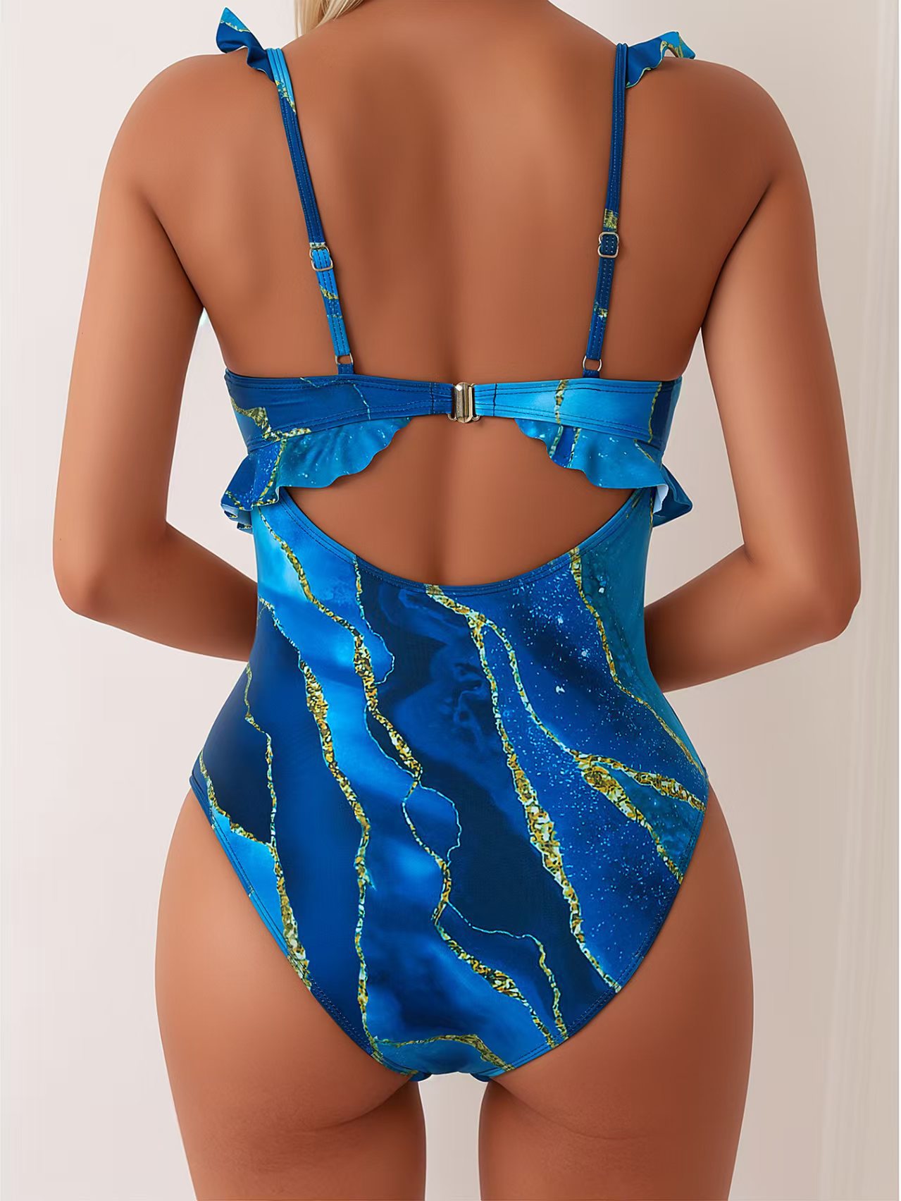 2025 러플 원피스 수영복, 몸에 꼭 맞는 배 커버, 슬리밍 온천 비키니, 유럽 및 미국 수영복 도매 원피스