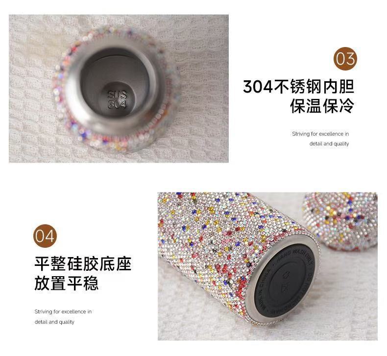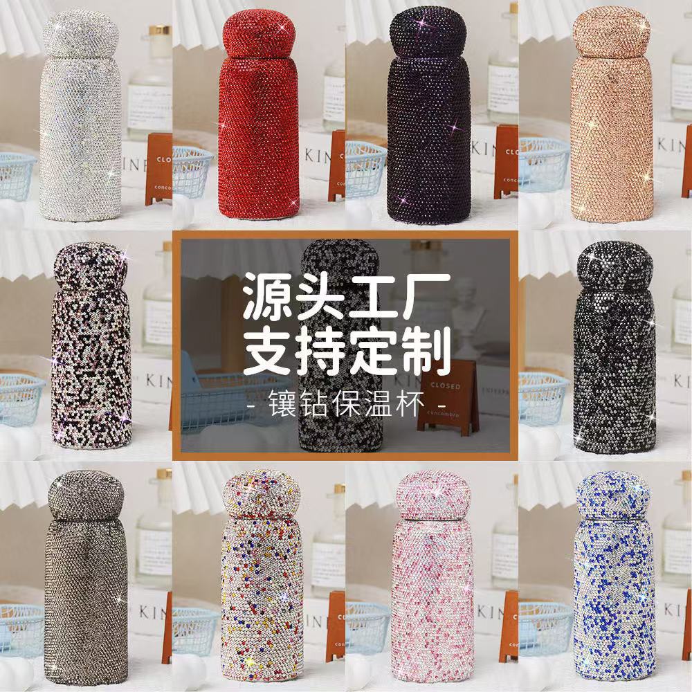 럭셔리 미니 보온병 높은 색상 가치 다이아몬드로 장식 된 304 스테인레스 스틸 워터 컵 여성 인터넷-유명한 휴대용 컵 절묘한 선물스토어 가기
