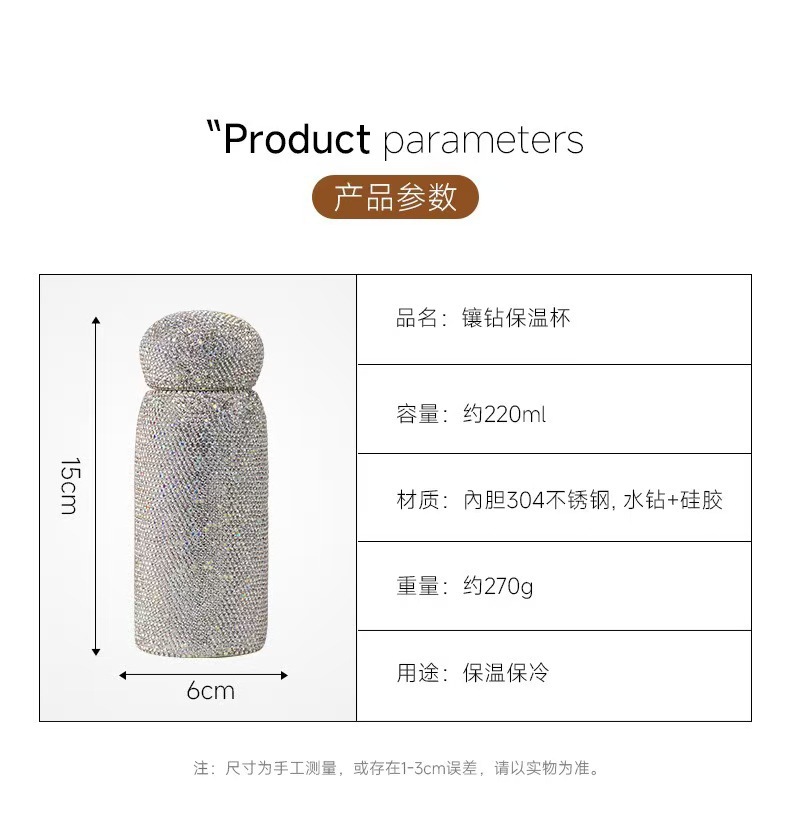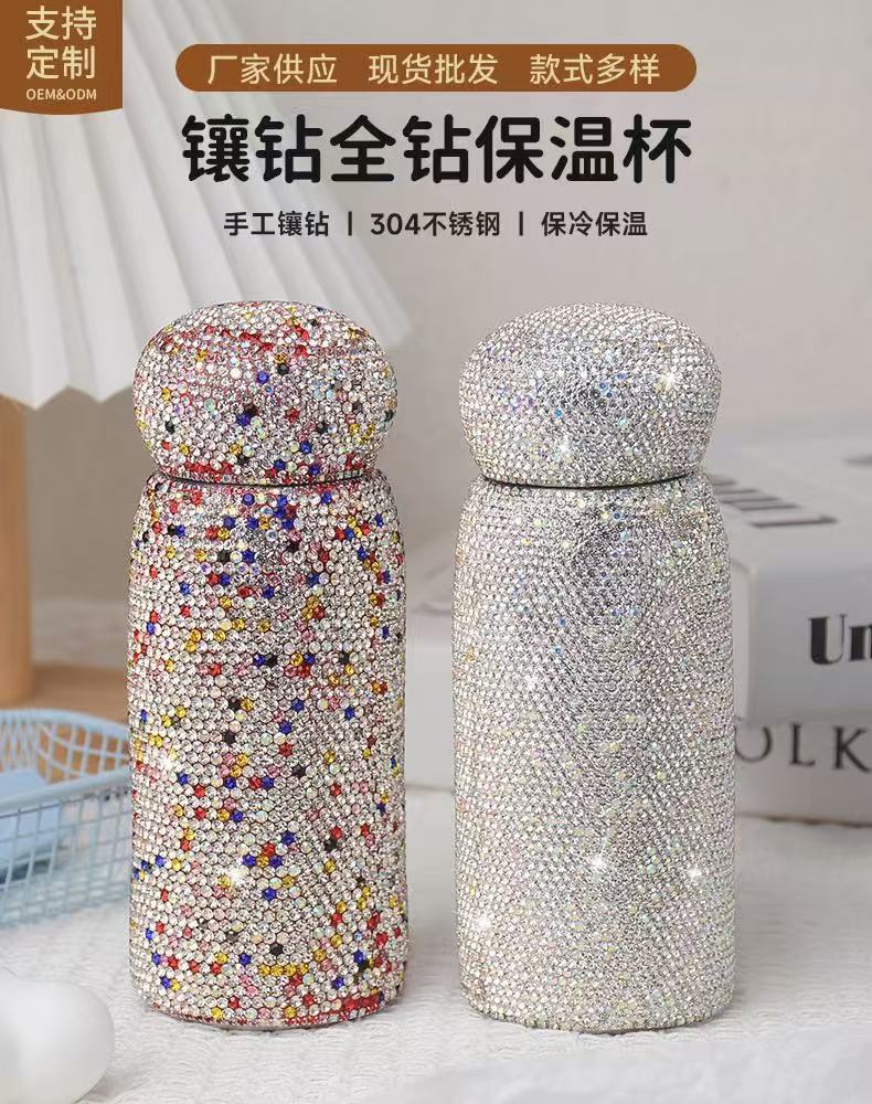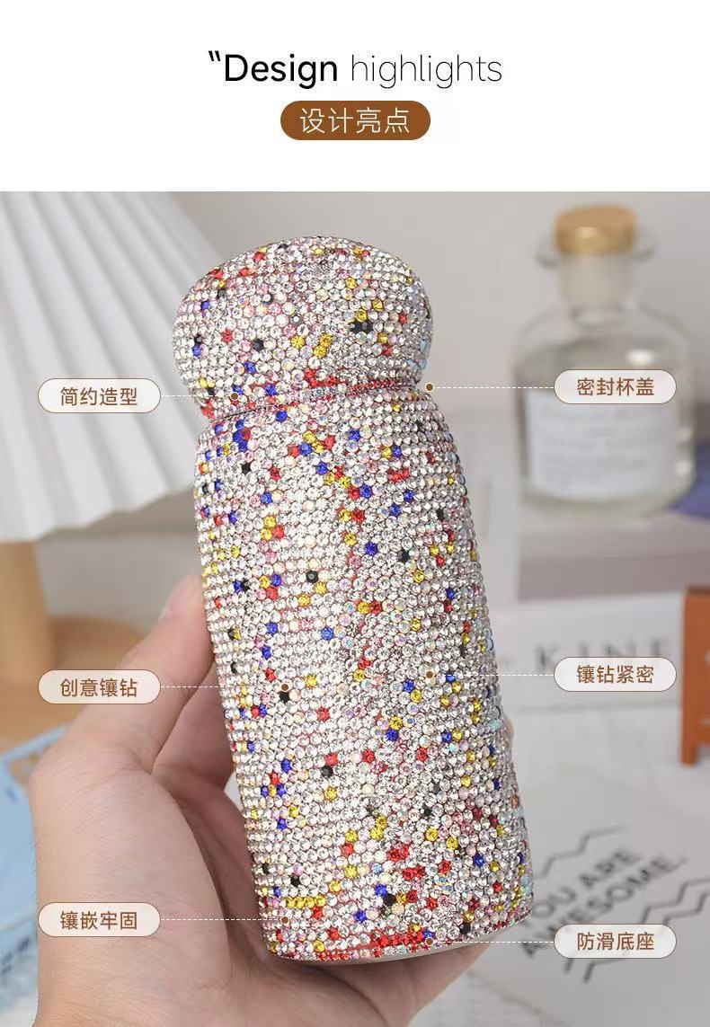 럭셔리 미니 보온병 높은 색상 가치 다이아몬드로 장식 된 304 스테인레스 스틸 워터 컵 여성 인터넷-유명한 휴대용 컵 절묘한 선물