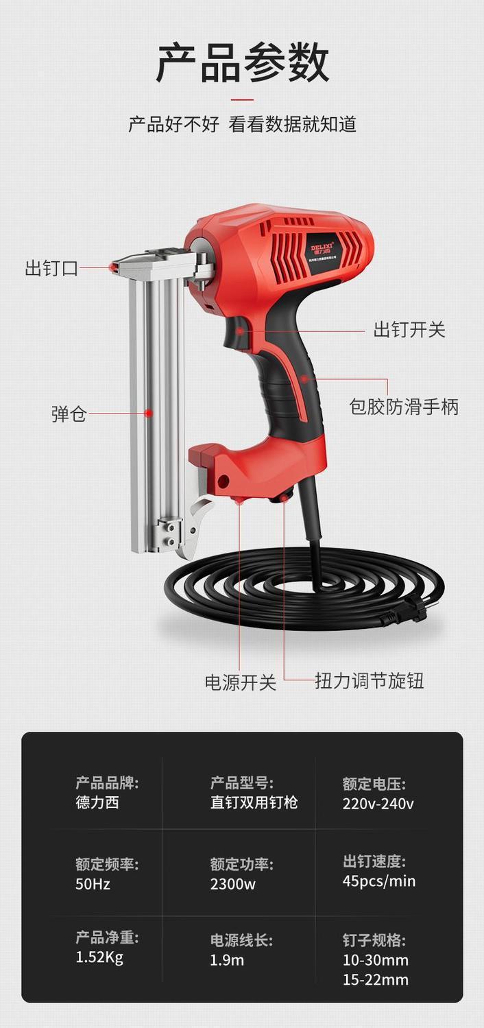 Delixi 전기 네일 건 목공 F30 에어 네일 건 이중 목적 스트레이트 코드 네일 랩 네일 건 목공 도구