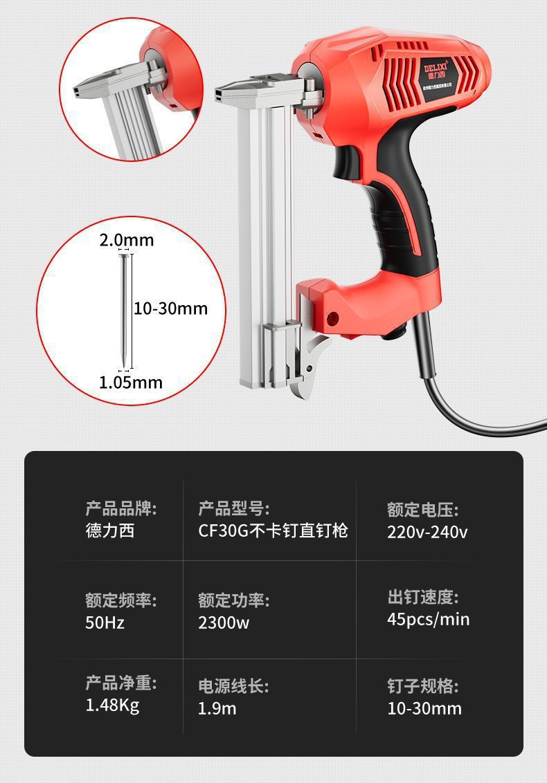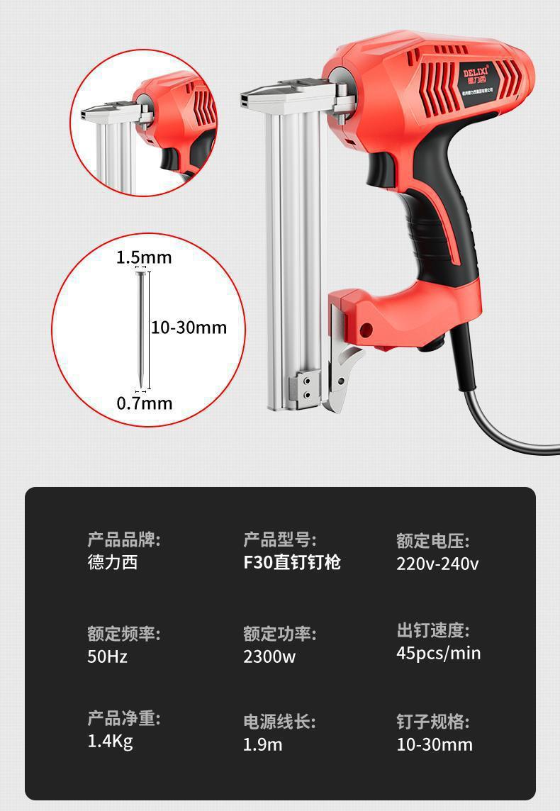 Delixi 전기 네일 건 목공 F30 에어 네일 건 이중 목적 스트레이트 코드 네일 랩 네일 건 목공 도구스토어 가기