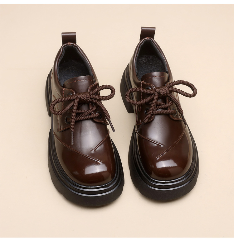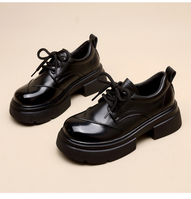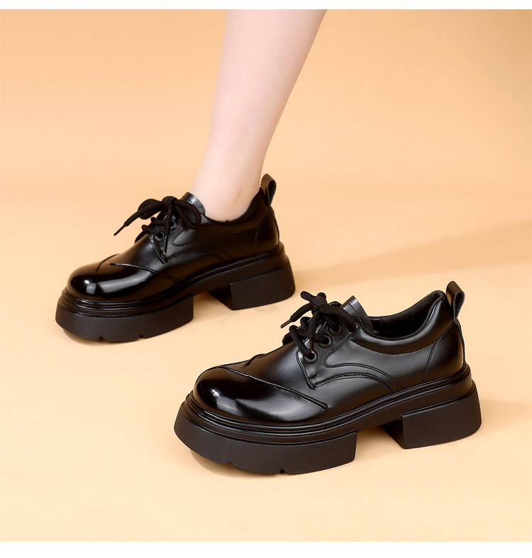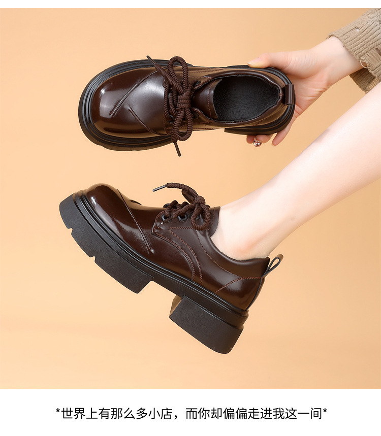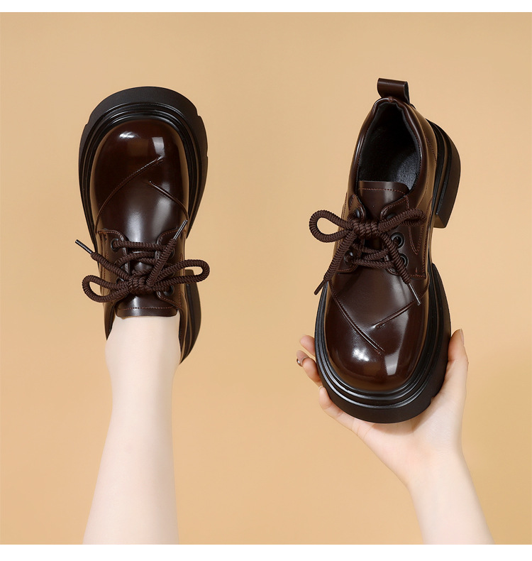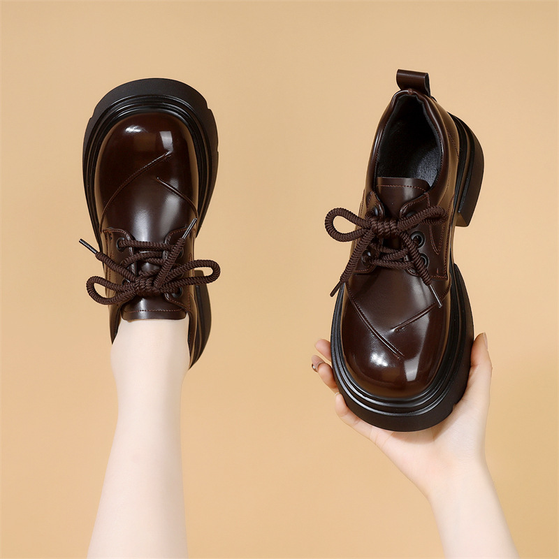 두꺼운 밑창 로퍼 여성의 2025 봄 새로운 스타일 올 매치 레이스 업 복고풍 작은 가죽 신발 부드러운 밑창 단층 신발스토어 가기