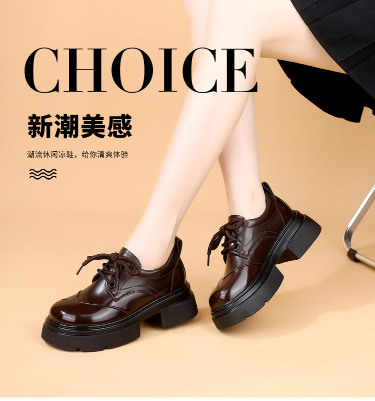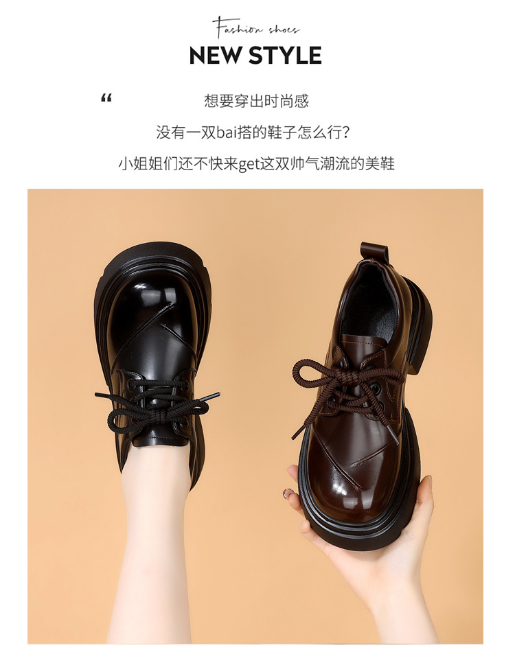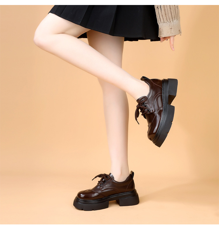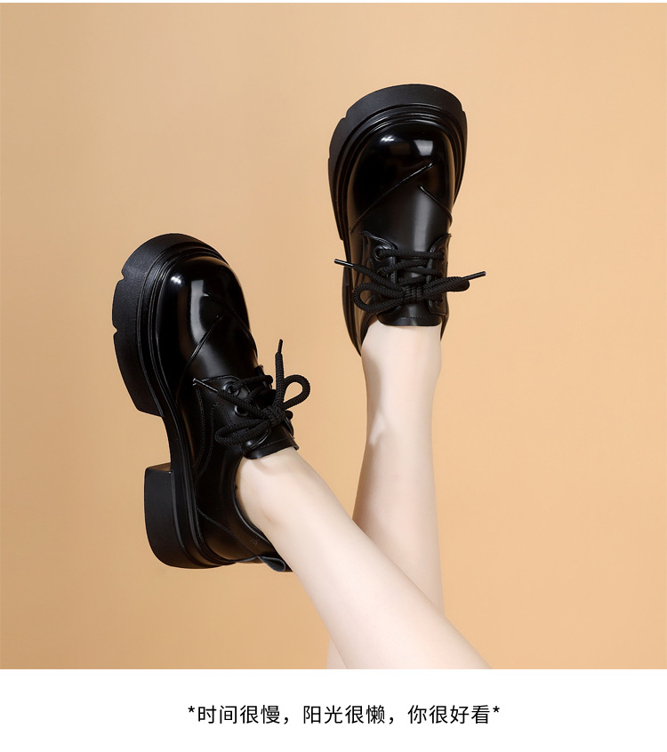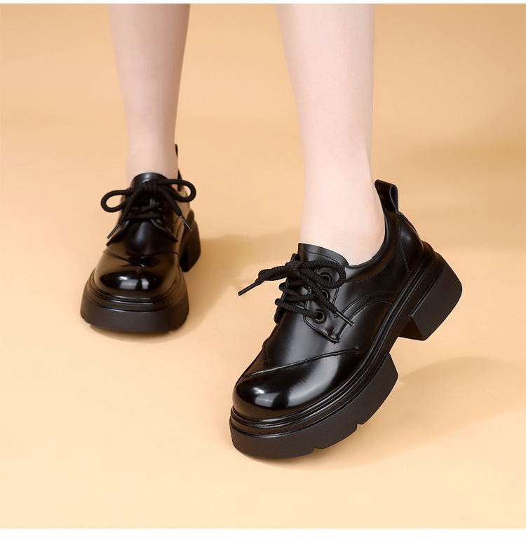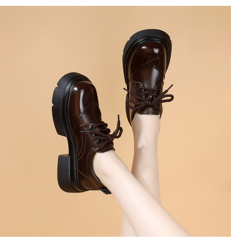 두꺼운 밑창 로퍼 여성의 2025 봄 새로운 스타일 올 매치 레이스 업 복고풍 작은 가죽 신발 부드러운 밑창 단층 신발스토어 가기