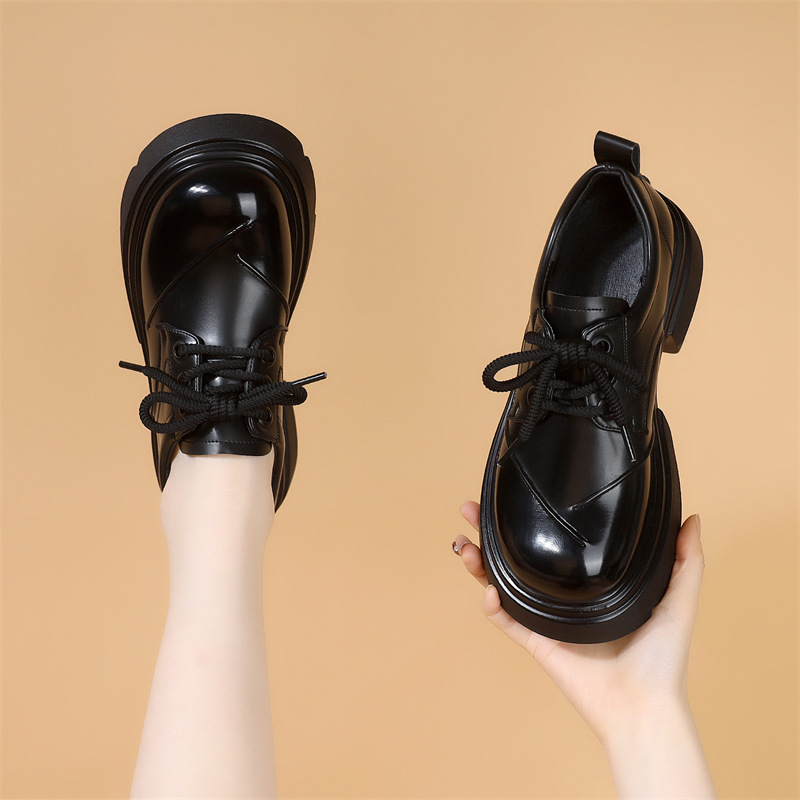 두꺼운 밑창 로퍼 여성의 2025 봄 새로운 스타일 올 매치 레이스 업 복고풍 작은 가죽 신발 부드러운 밑창 단층 신발