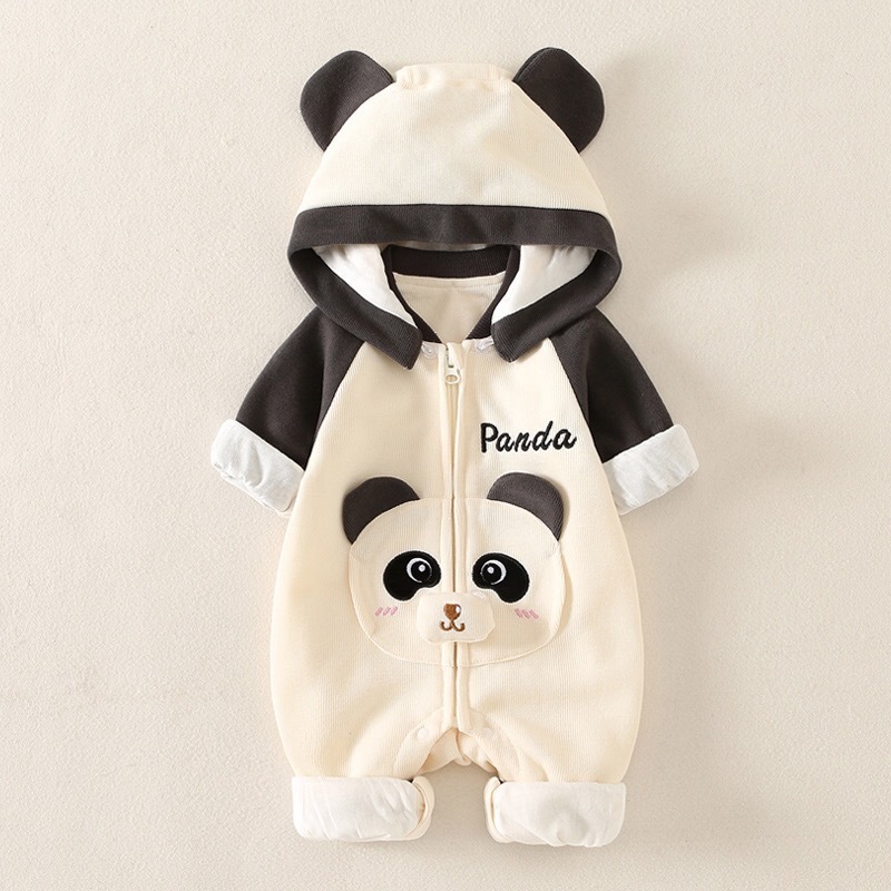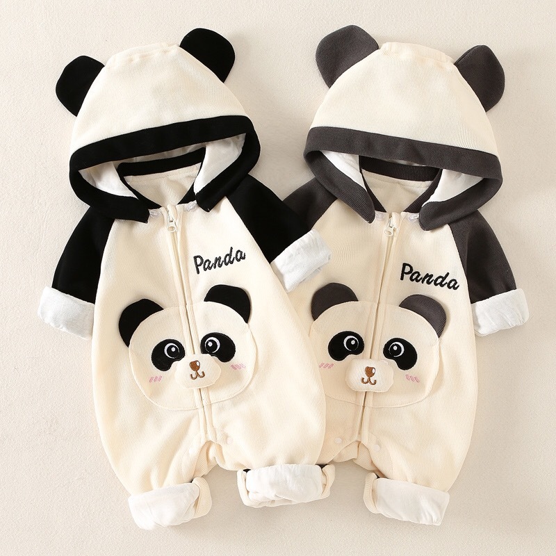 • 귀여운 팬더 원피스 그레이 더블 레이어 코튼 안감