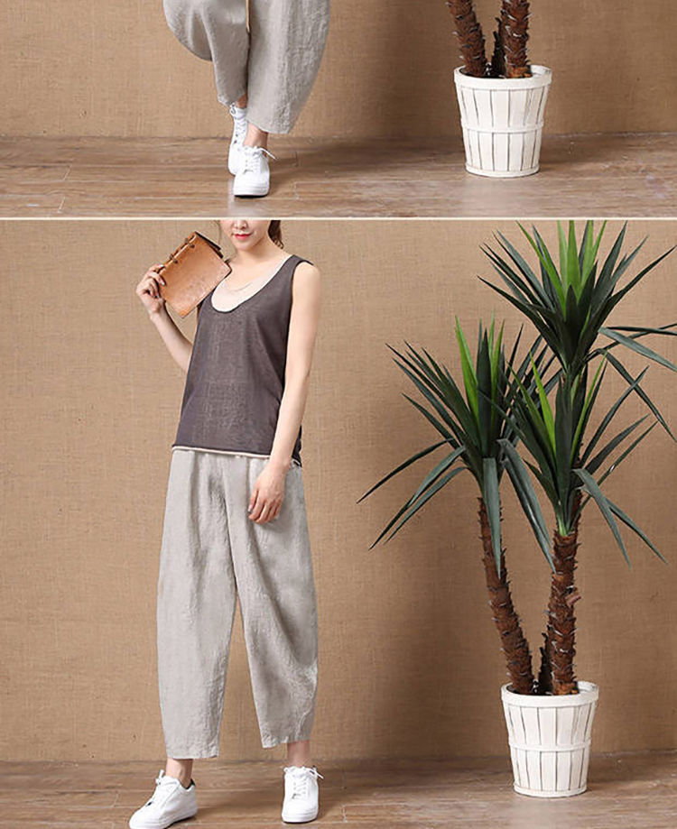 코튼 앤 리넨 와이드 레그 팬츠 여자 2024 년 여름 뉴 루즈 플러스 사이즈 할란 올 매치 리넨 나인포인트 캐주얼 바지스토어 가기
