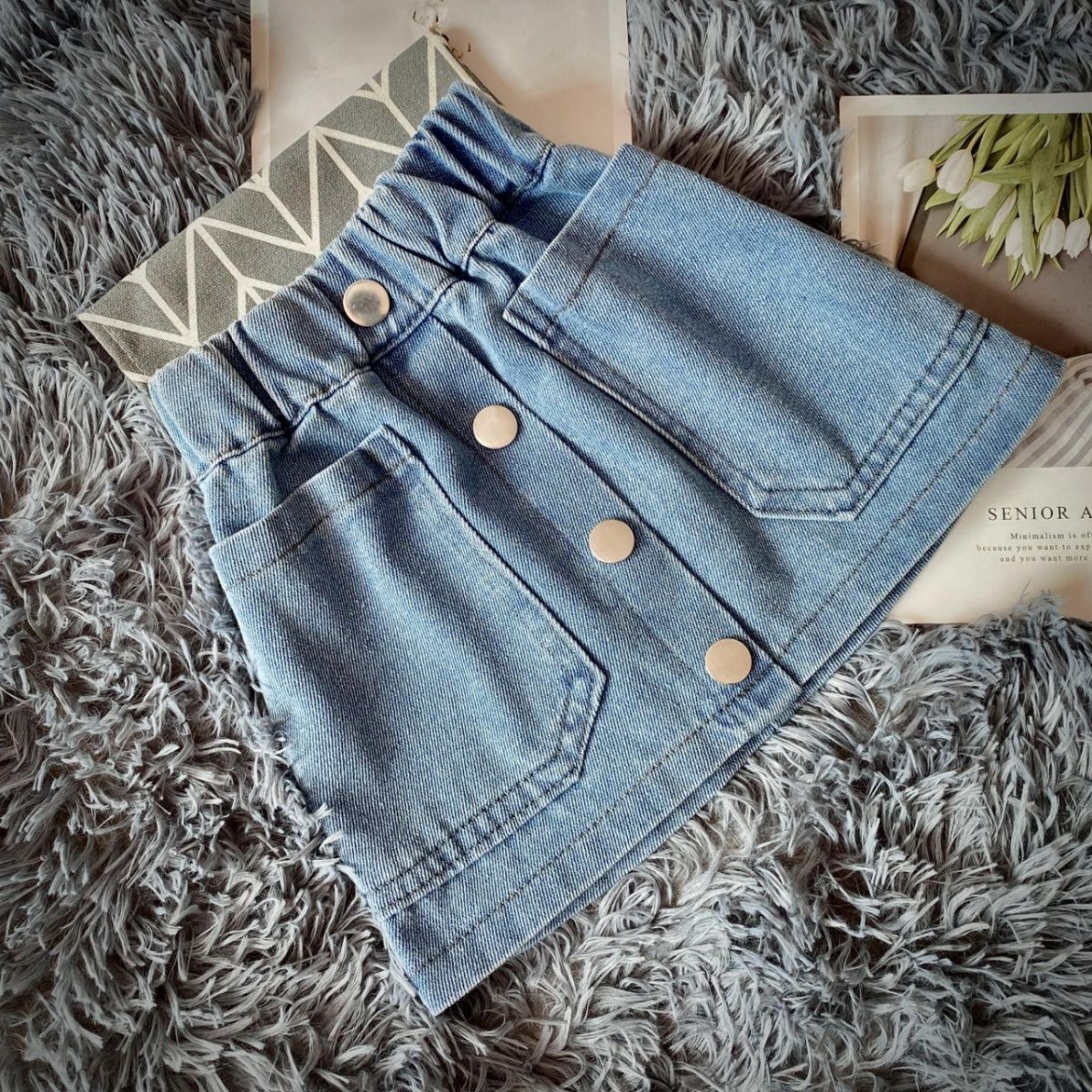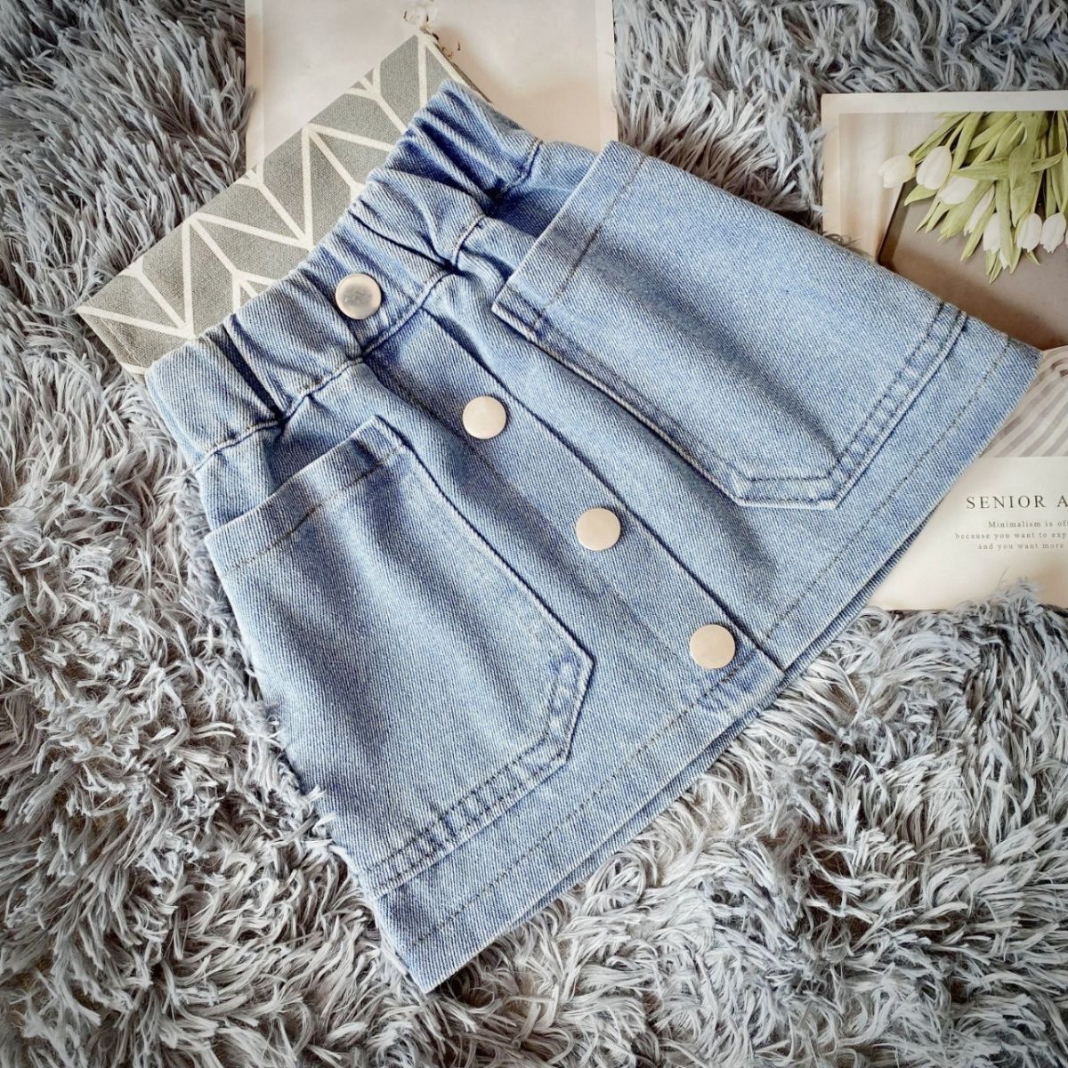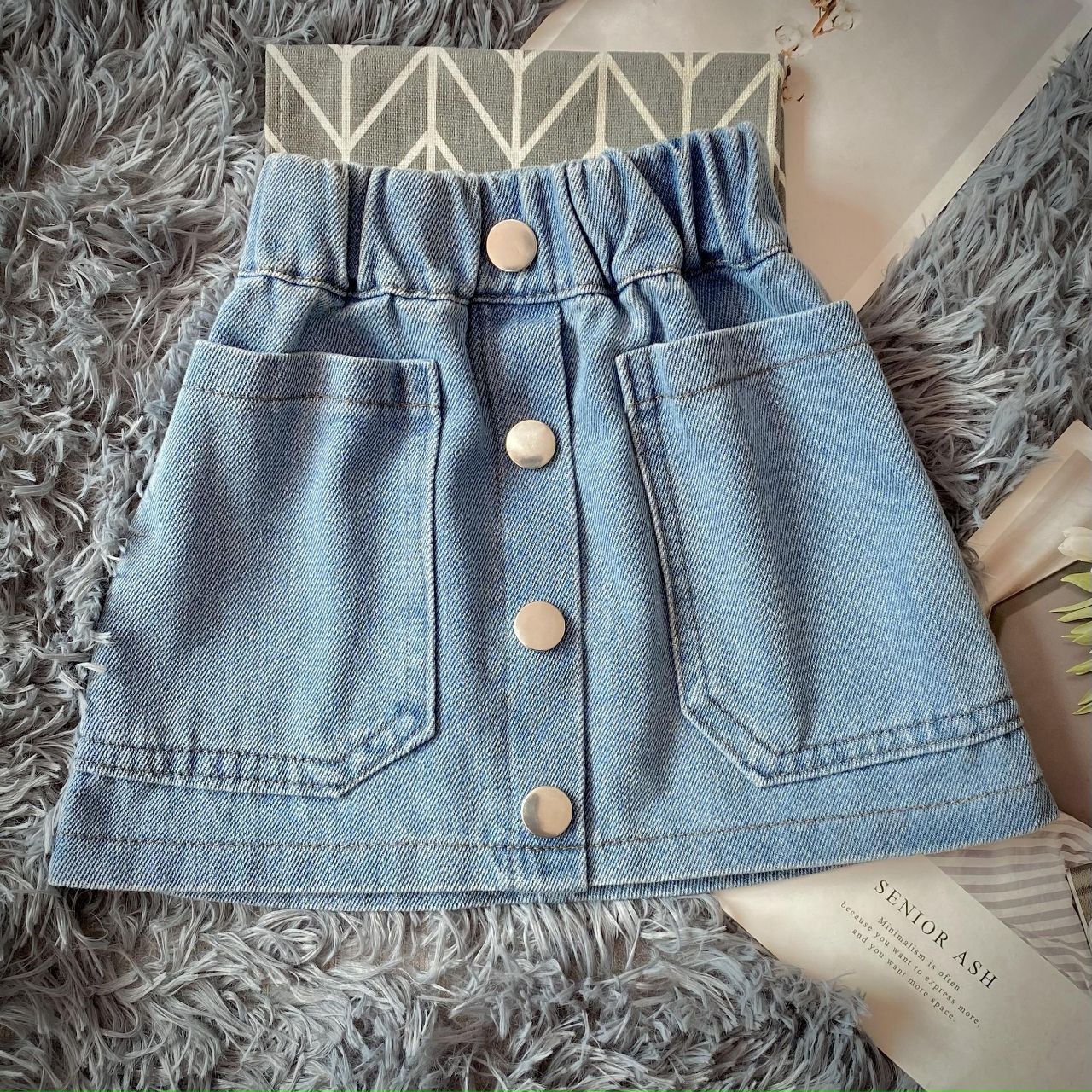 여자 여름 데님 짧은 치마 아기의 서양식 어린이 독특한 유행 한국 스타일 유행 버튼 인터넷 연예인 공주 치마스토어 가기