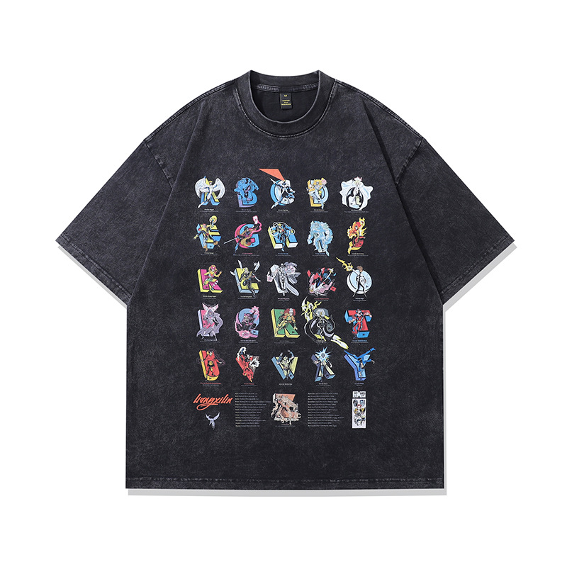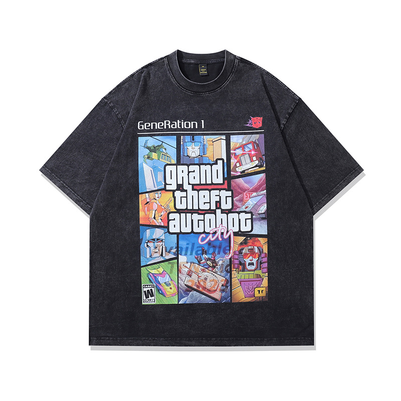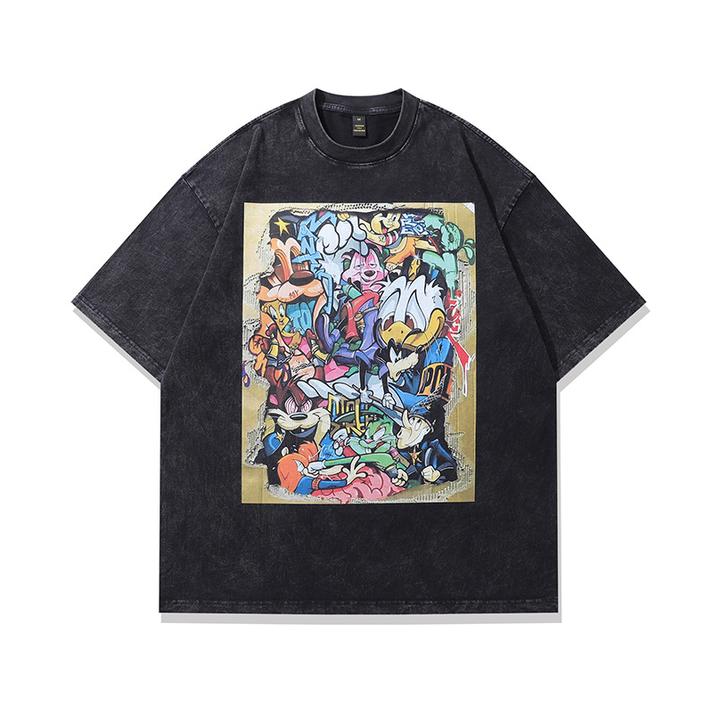 TKPA 남성 스트리트 패션 빈티지 탑 아메리칸 레트로 프린트 프라이드 컬러 워시 루즈 코튼 반팔 티셔츠 남성용 ins스토어 가기